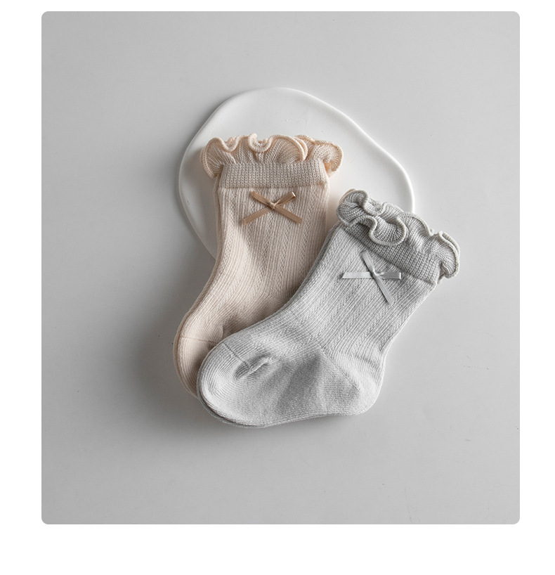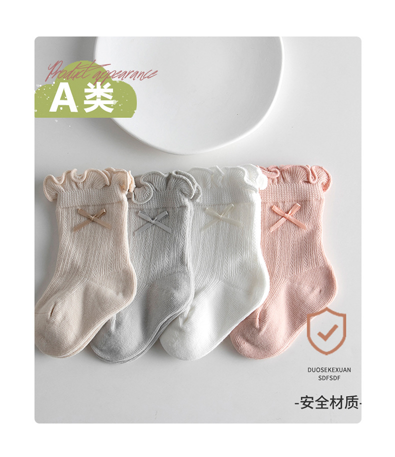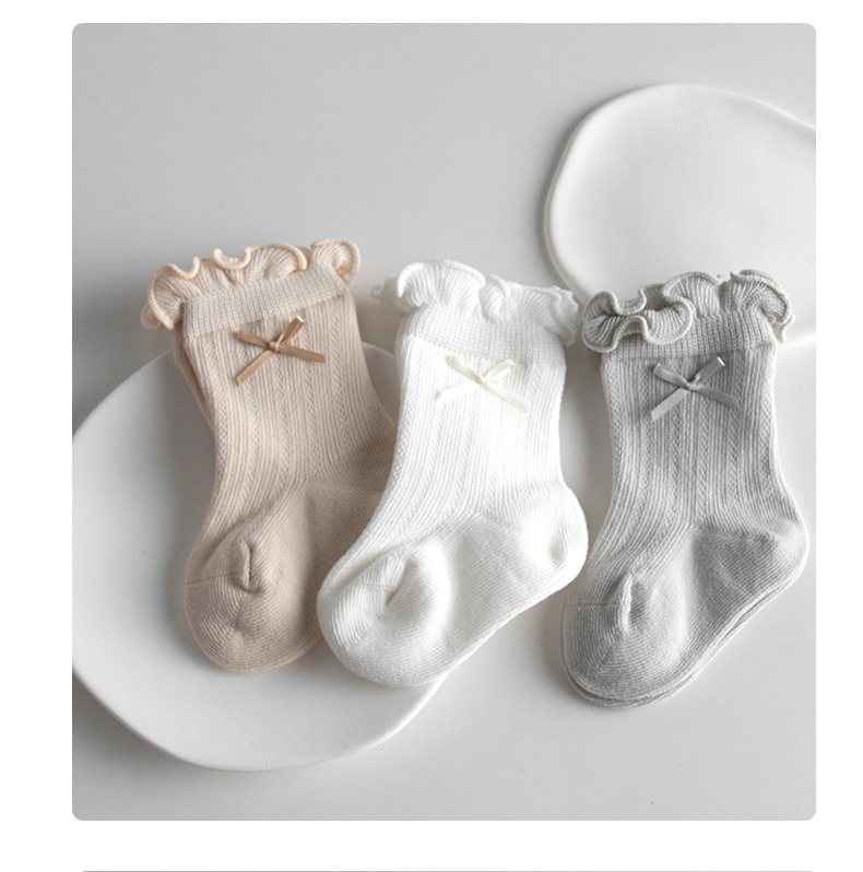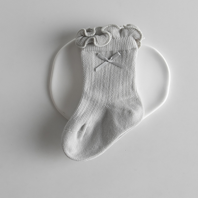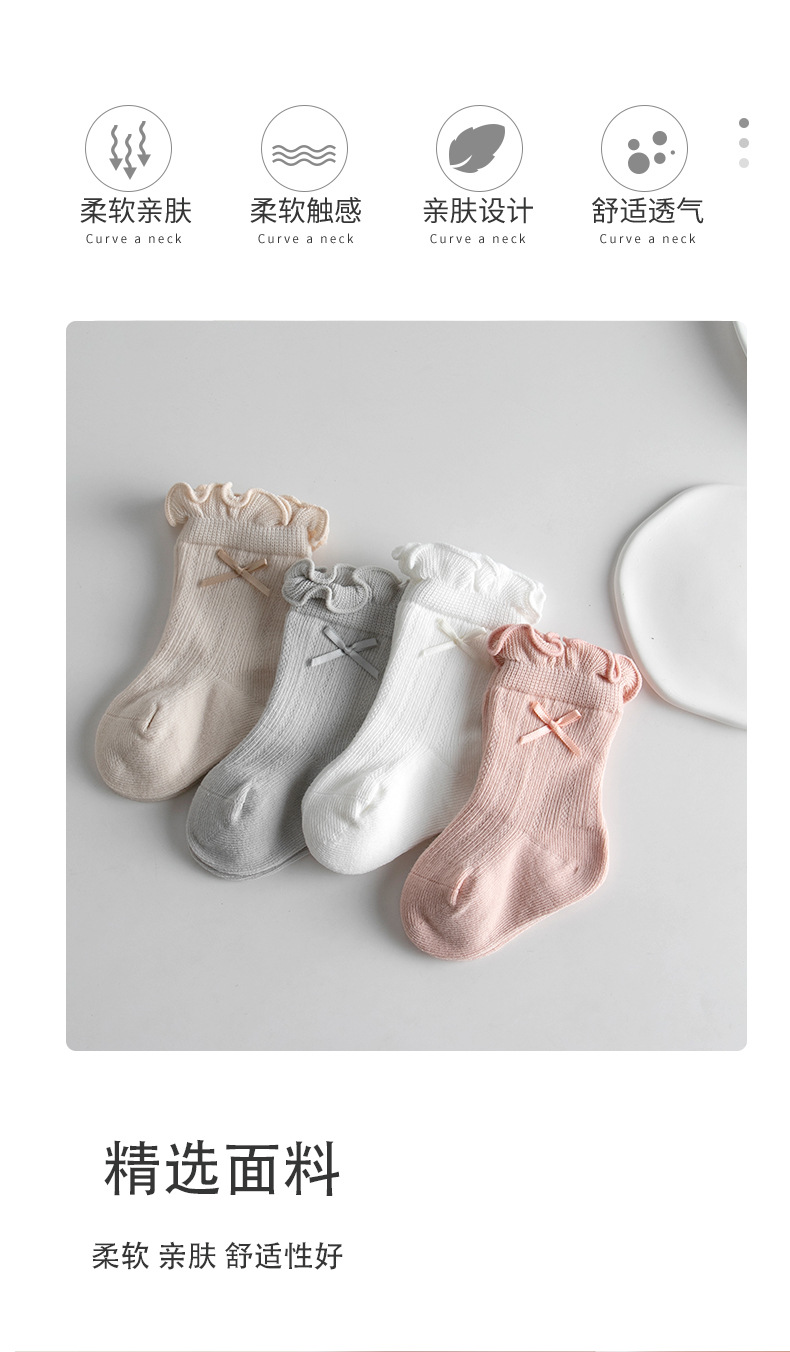 宝宝日系泡泡口中筒袜春夏薄款网眼女棉袜甜美蝴蝶结跨境婴儿袜子