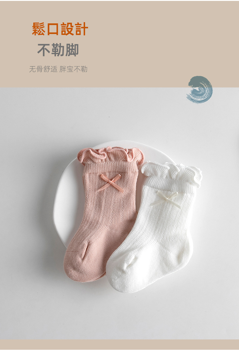 加柔宝宝无骨棉袜松口婴儿袜批发百搭花边中筒袜miu系蝴蝶结新生