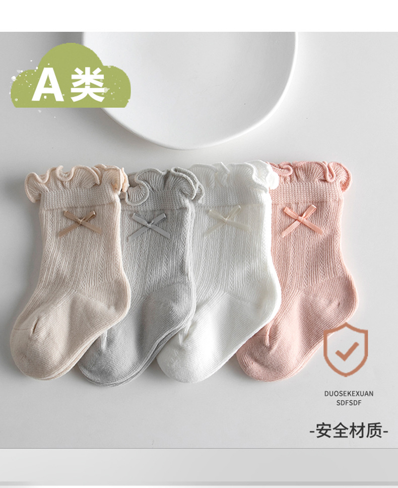 100%棉袜婴儿春秋中筒袜蝴蝶结无骨纯棉袜新生儿短袜秋a类婴幼儿