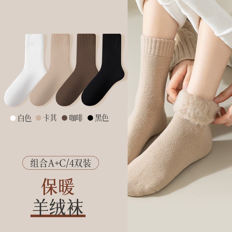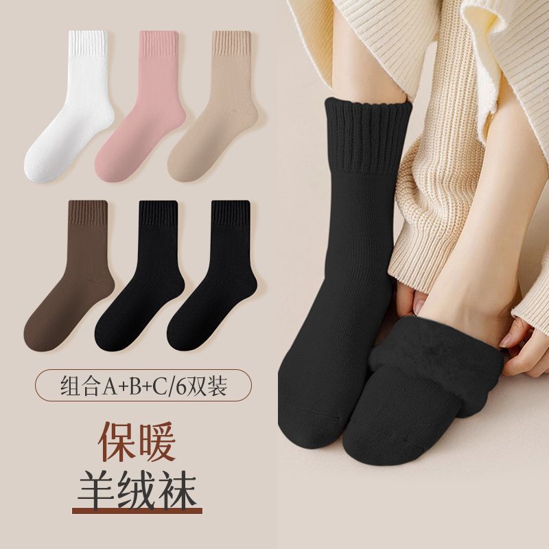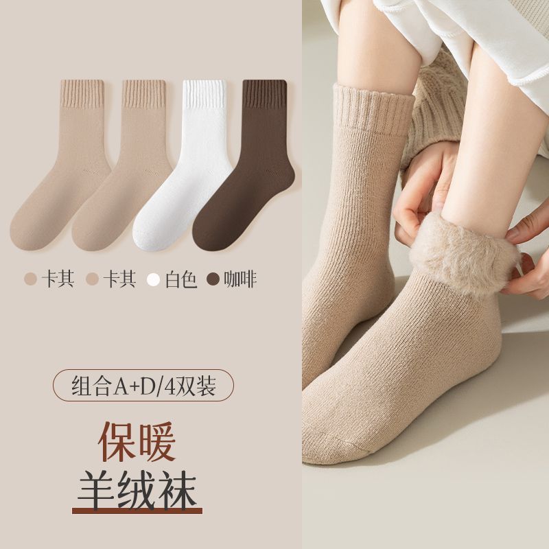 Grassman 양말 여자 가을과 겨울 기모 두꺼운 따뜻한 스타킹 여자 중간 길이의 스타킹 겨울 스타킹 문 양말스토어 가기