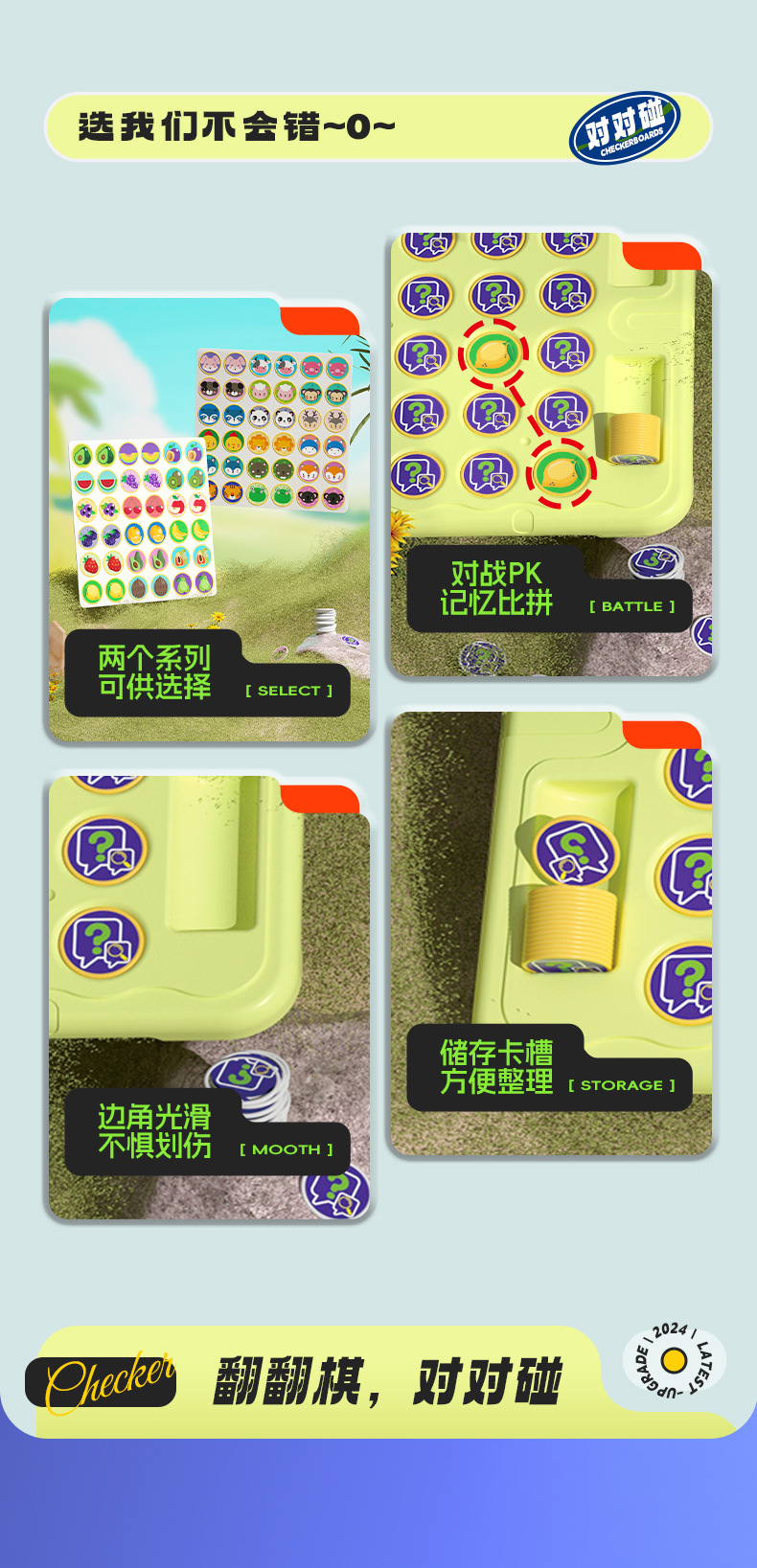 • 초대형 사이즈】재미있는 동물 + 과일 플립 체스 컬러 박스