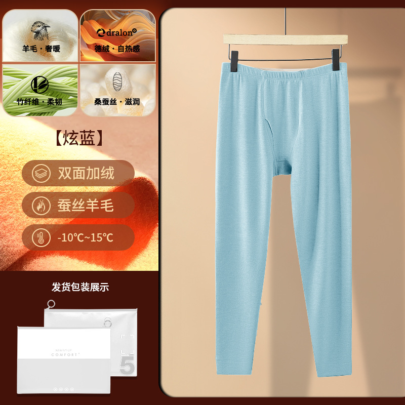 [매우 부드럽고 따뜻함] 새로운 크로스보더 가을 겨울 남성용 실크 울 따뜻한 바지 플러스 벨벳 두꺼운 심리스 레깅스스토어 가기
