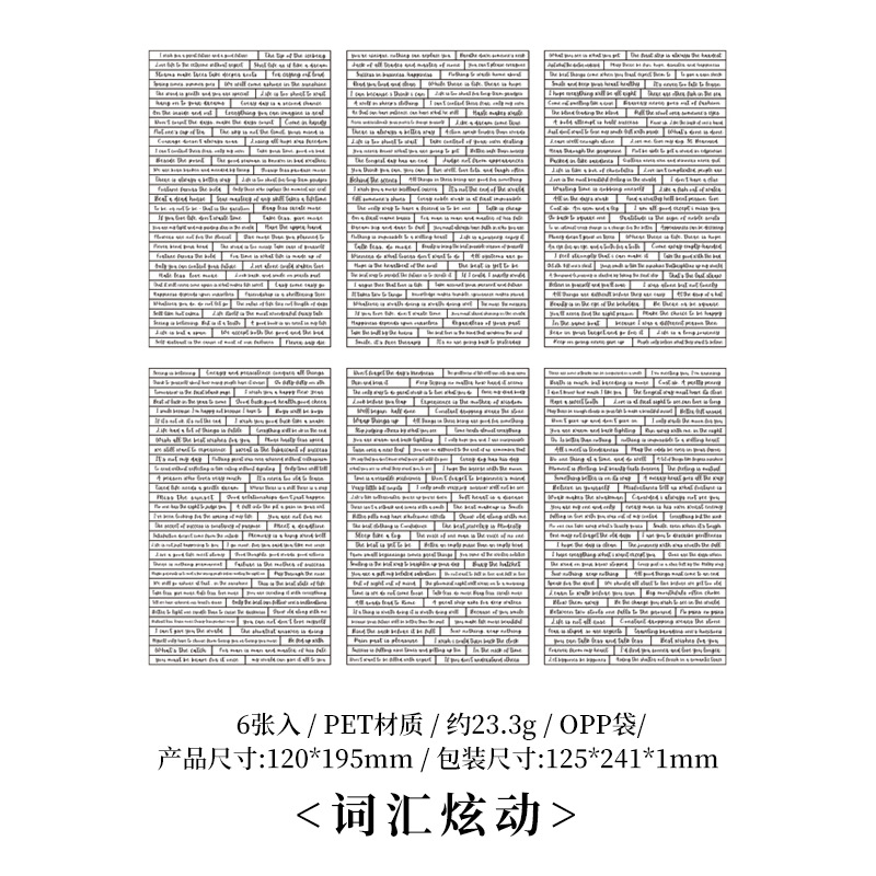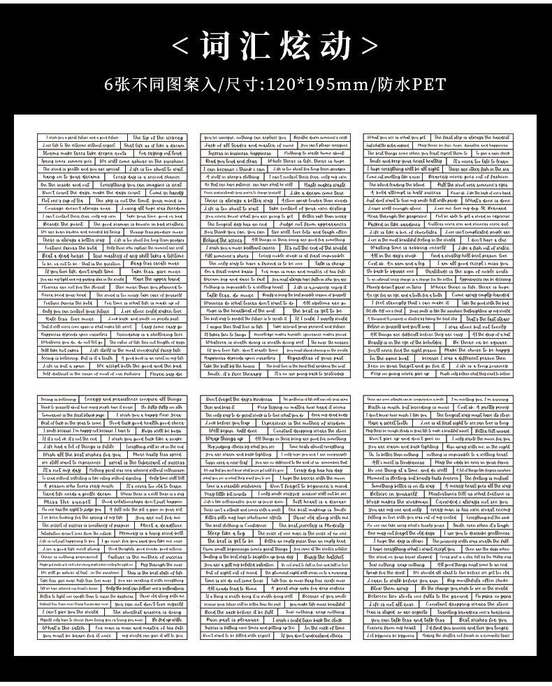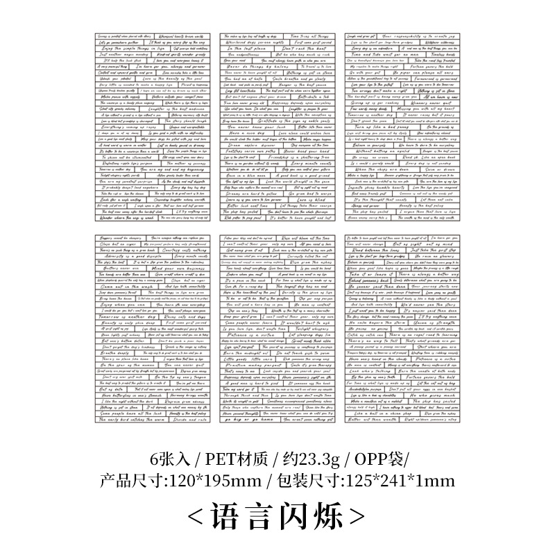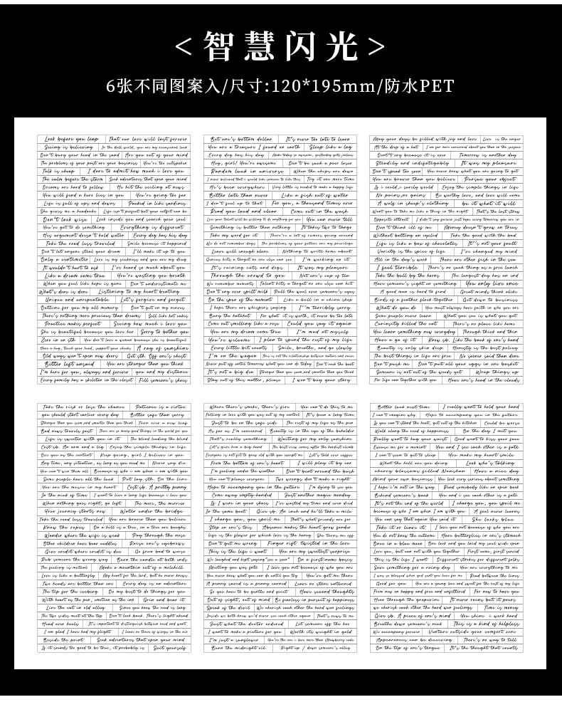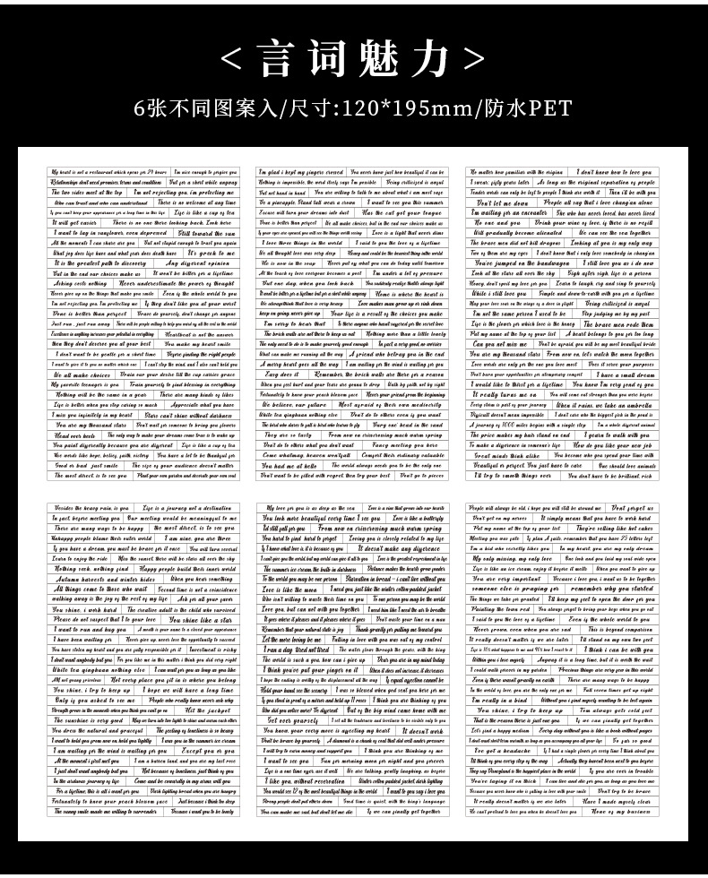ZABC 국경 간 PET 스티커 영어 운율 시리즈 6 에 4 개의 선택된 흑백 영어 소재 장식 스티커스토어 가기