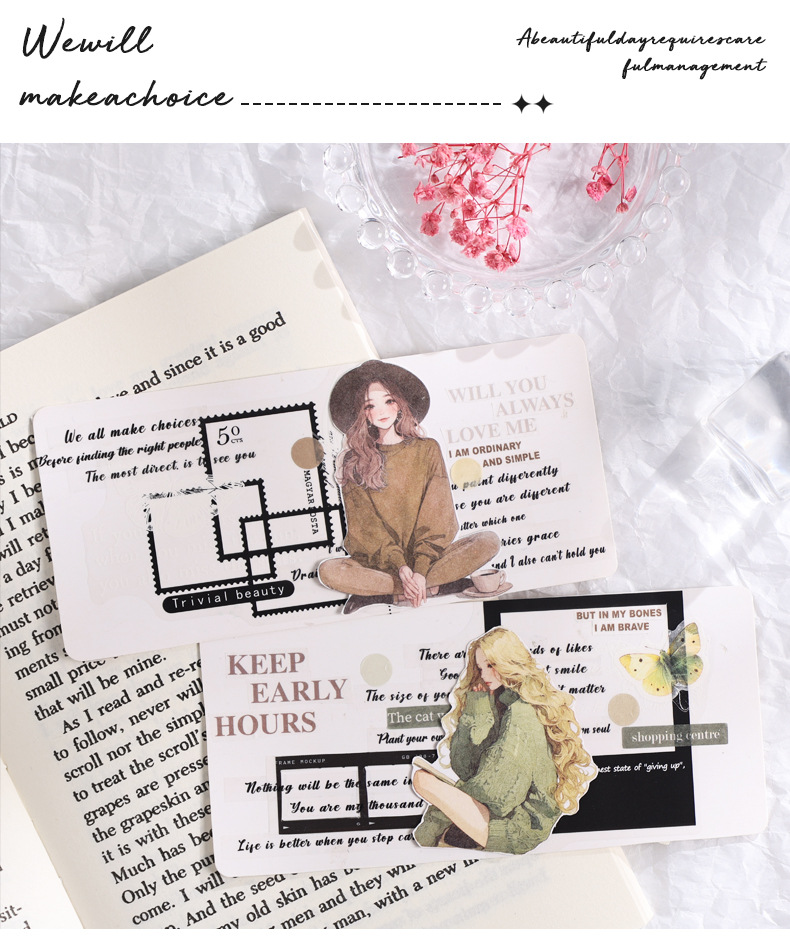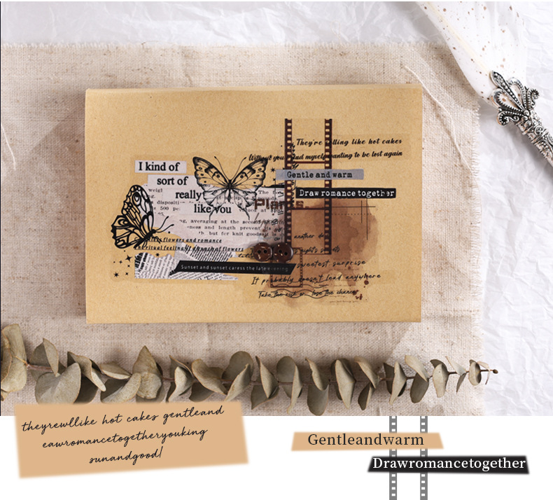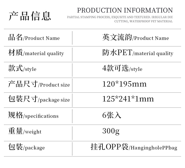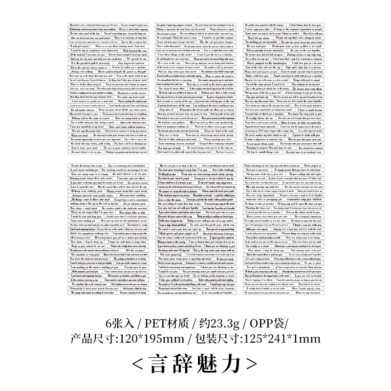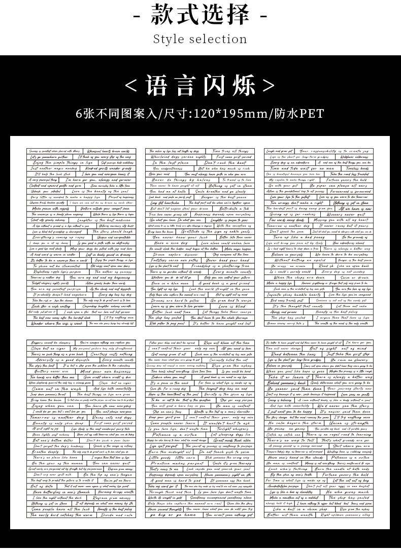 ZABC 국경 간 PET 스티커 영어 운율 시리즈 6 에 4 개의 선택된 흑백 영어 소재 장식 스티커스토어 가기