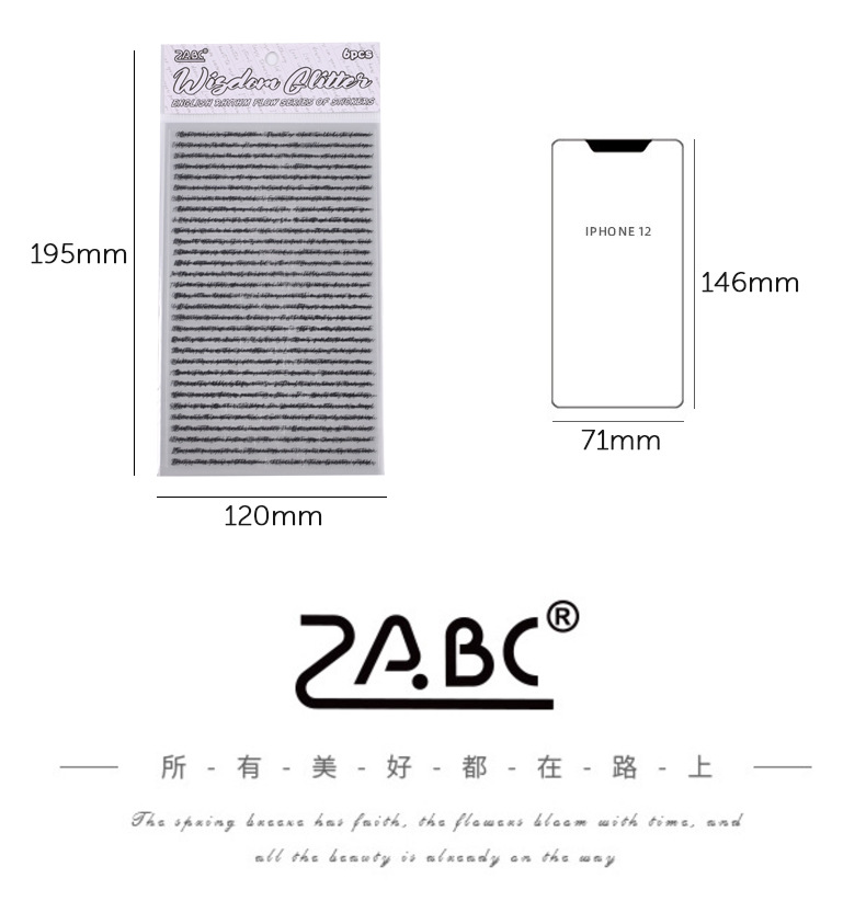 ZABC 국경 간 PET 스티커 영어 운율 시리즈 6 에 4 개의 선택된 흑백 영어 소재 장식 스티커