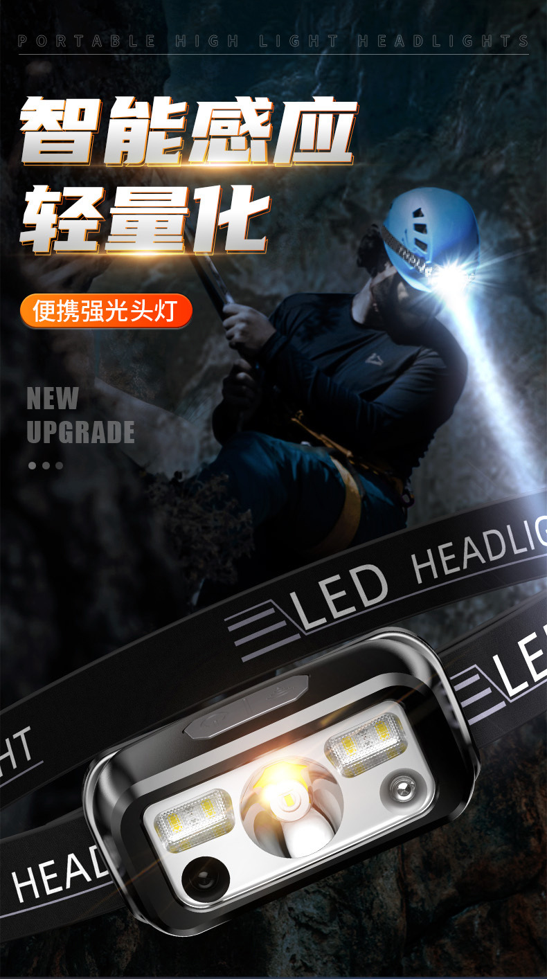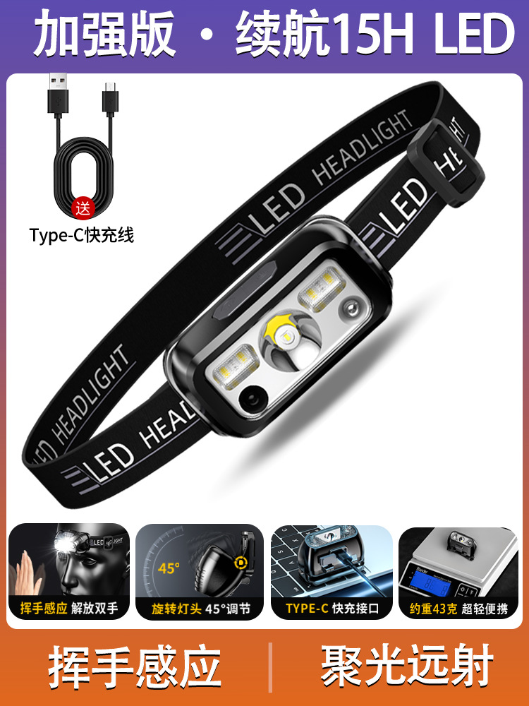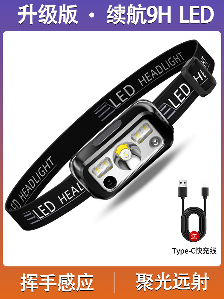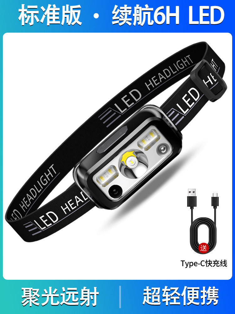헤드 램프 헤드 장착 슈퍼 브라이트 충전식 강한 빛 유도 손전등 작은 밤 낚시 내구성 등산 레드 라이트 배터리