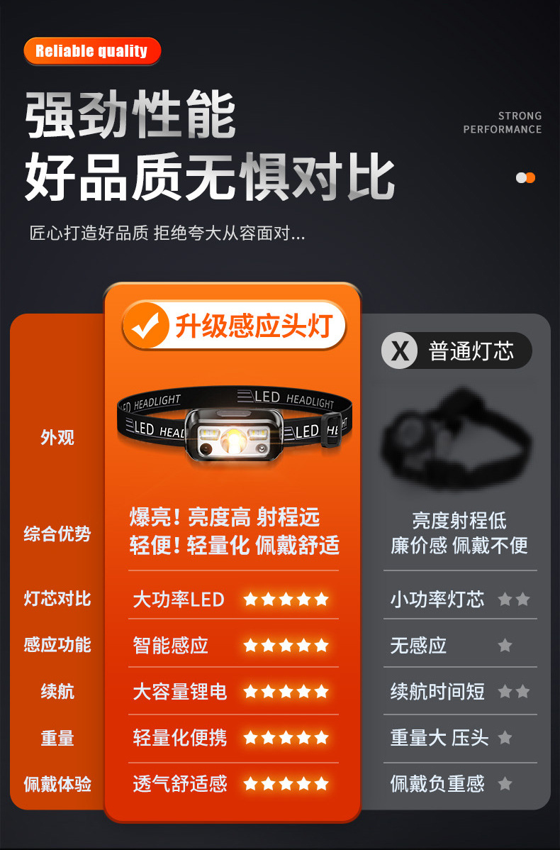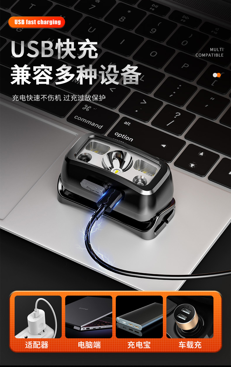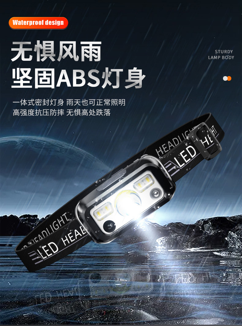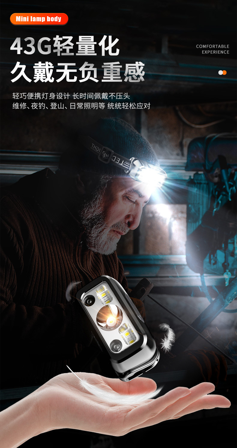 헤드 램프 헤드 장착 슈퍼 브라이트 충전식 강한 빛 유도 손전등 작은 밤 낚시 내구성 등산 레드 라이트 배터리