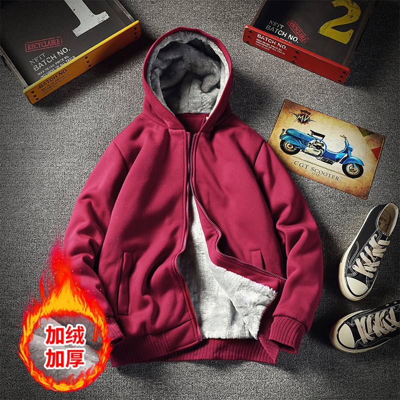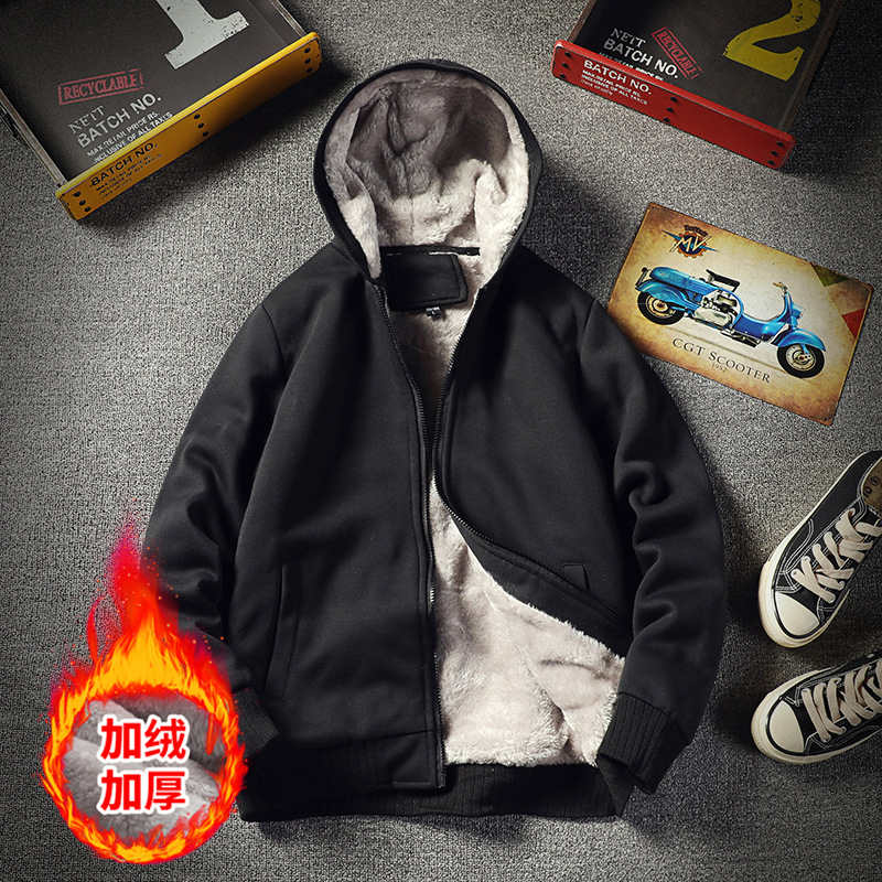 국경 간 가을과 겨울 기모 두꺼운 카디건 후드 스웨터 남성 패션 트렌드 레트로 느슨한 따뜻한 재킷 탑
