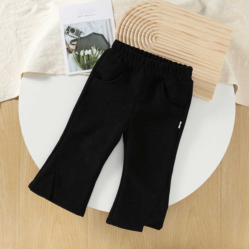 아기 소녀 벨벳 바지 2024 겨울 새로운 스타일 어린 소녀 슬릿 플레어 바지 가을, 겨울 캐주얼 다목적 바지스토어 가기