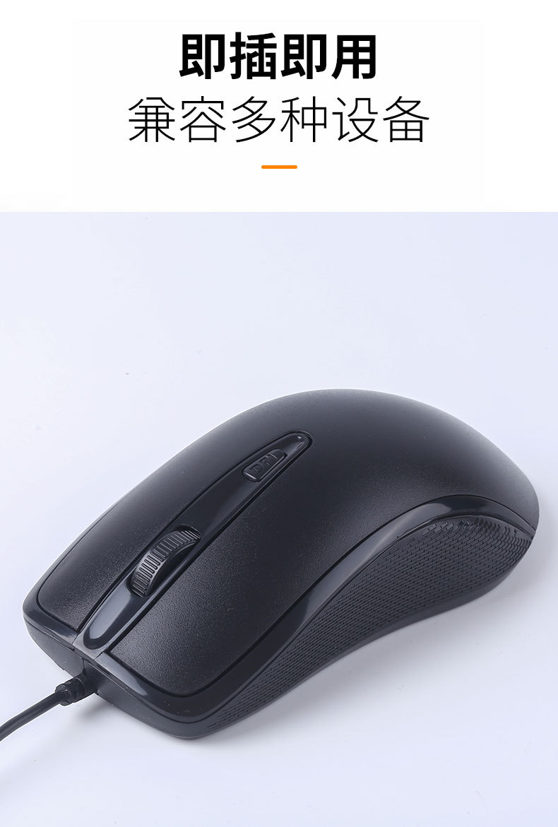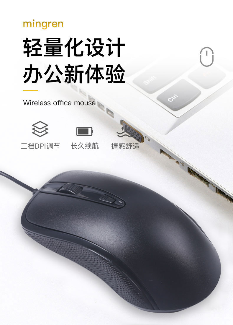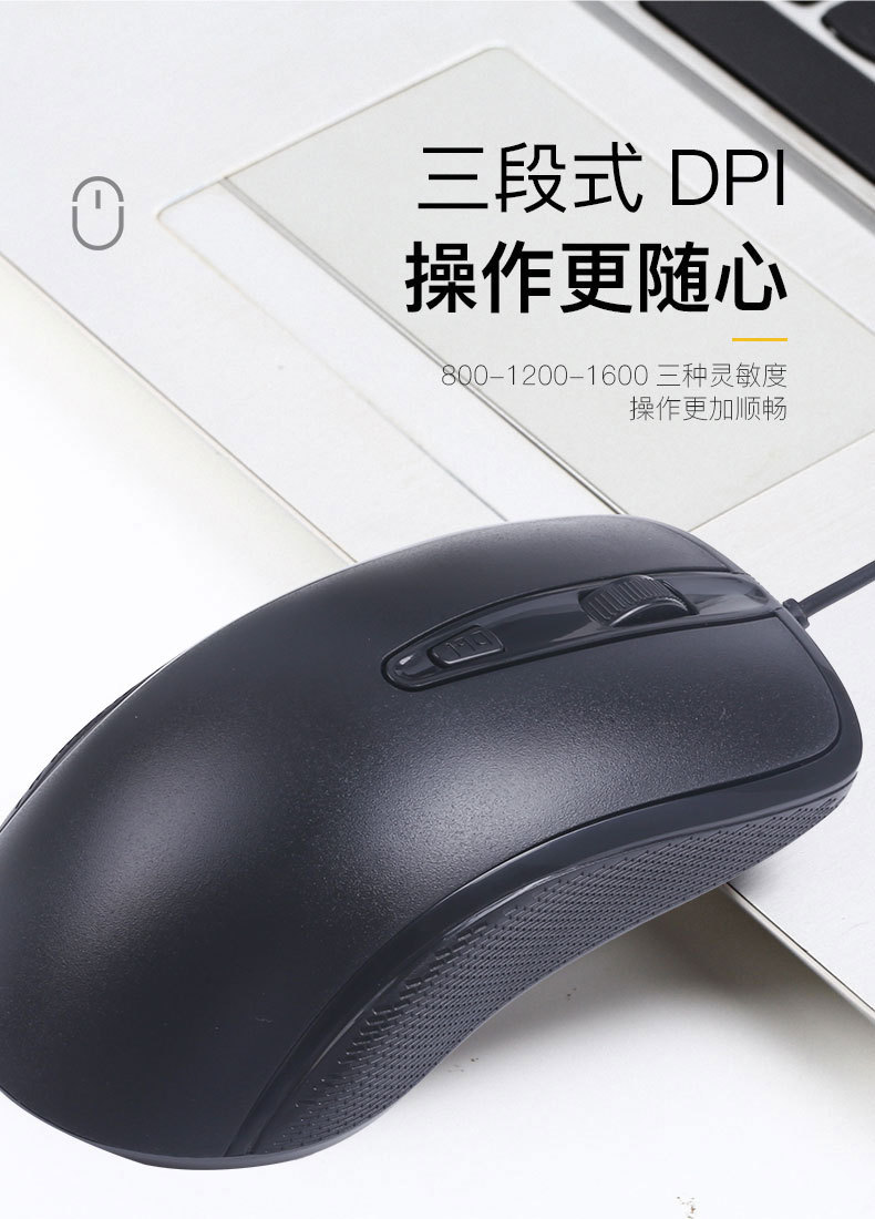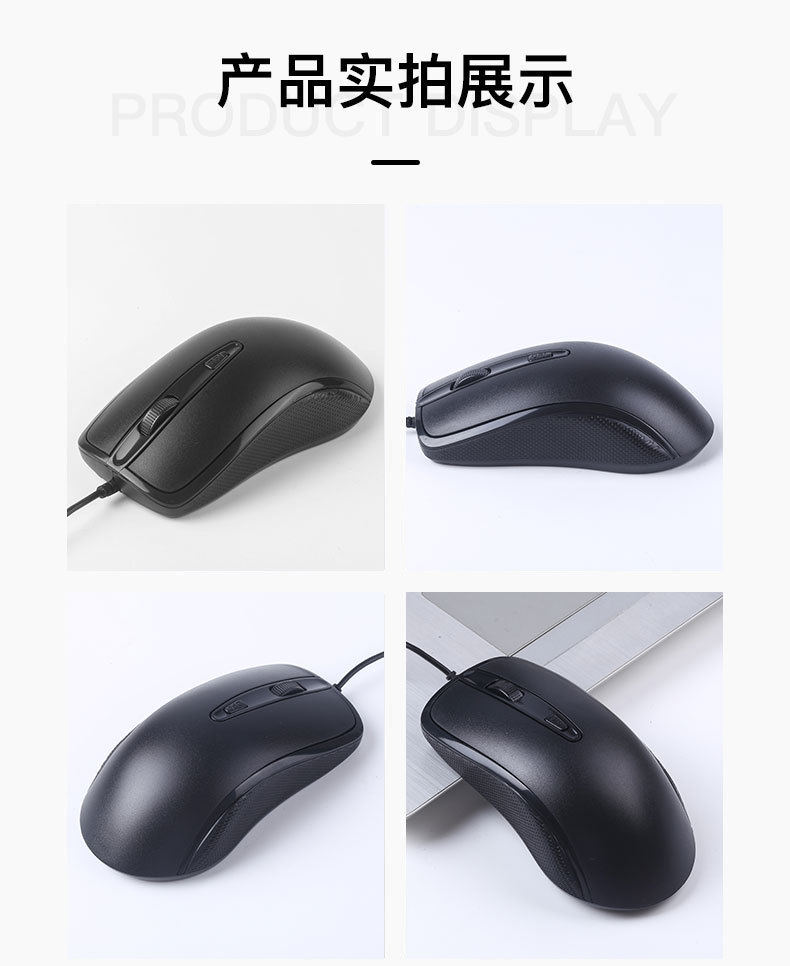 국경 블랙 유선 마우스 음소거 홈 오피스 노트북 데스크탑 USB 마우스 실크 스크린 로고 마우스