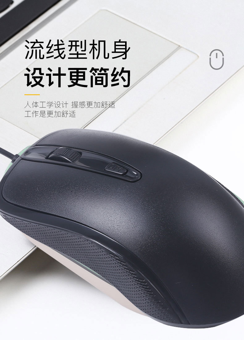 국경 블랙 유선 마우스 음소거 홈 오피스 노트북 데스크탑 USB 마우스 실크 스크린 로고 마우스스토어 가기