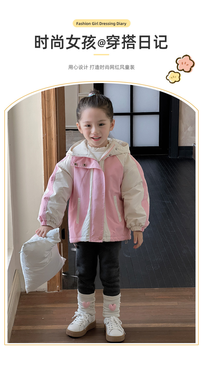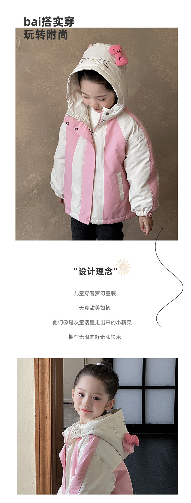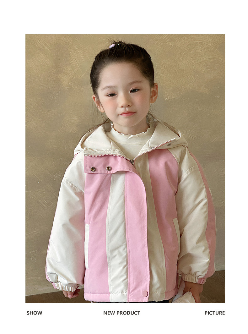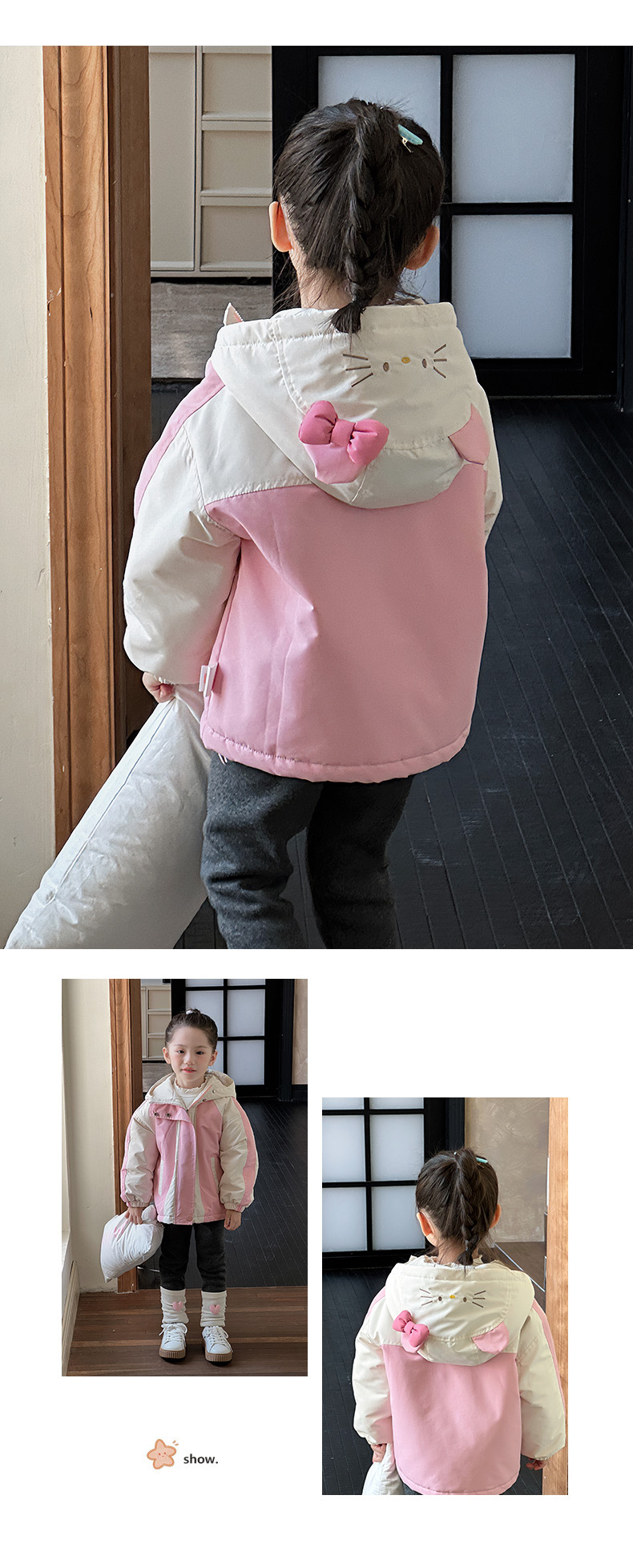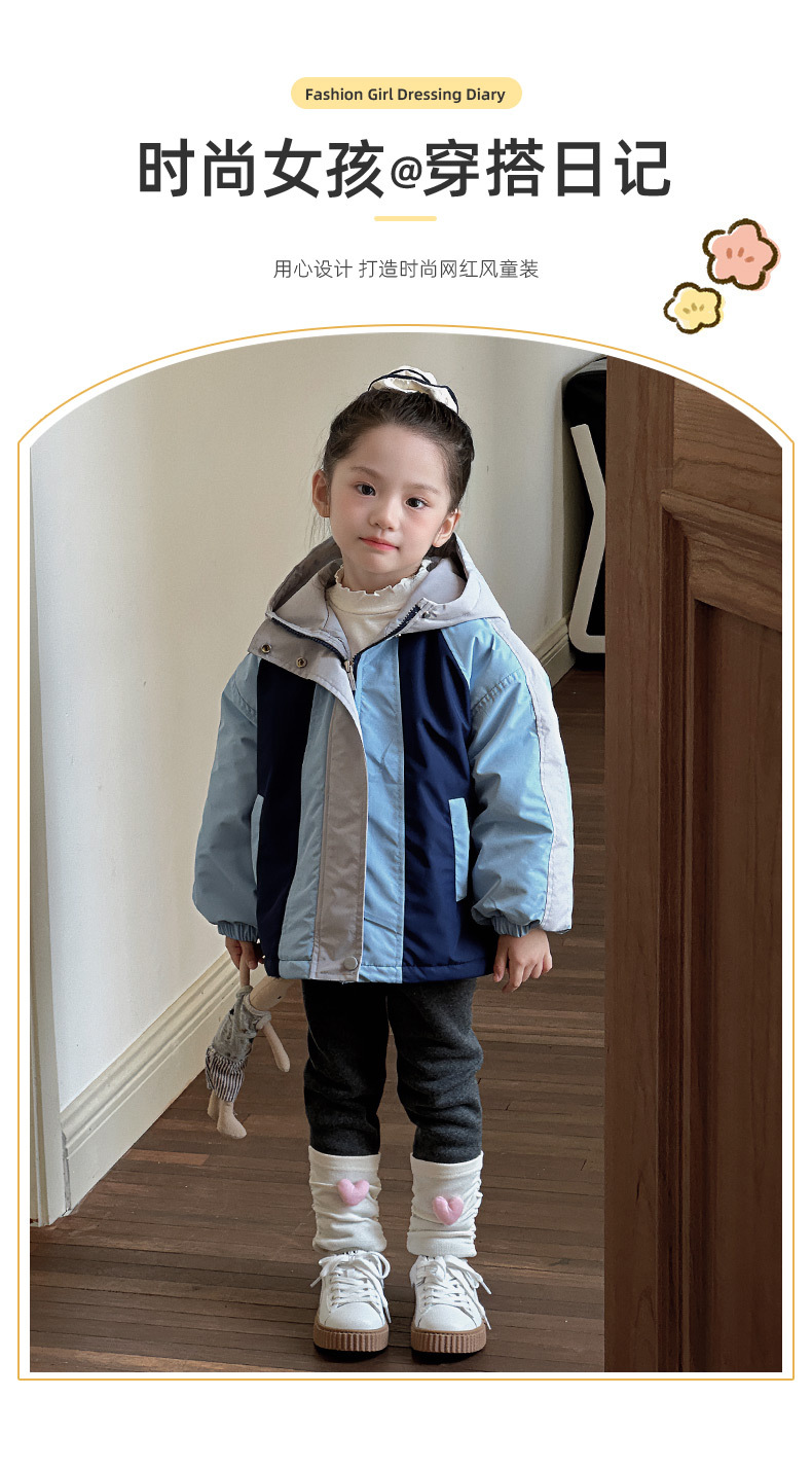 【재고 있음】아동용 누빔 코튼 재킷 2024 가을 겨울 여아용 코트 후드가 달린 두꺼운 보온 코튼 재킷스토어 가기