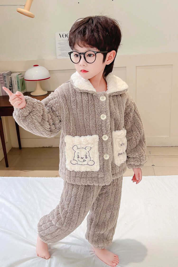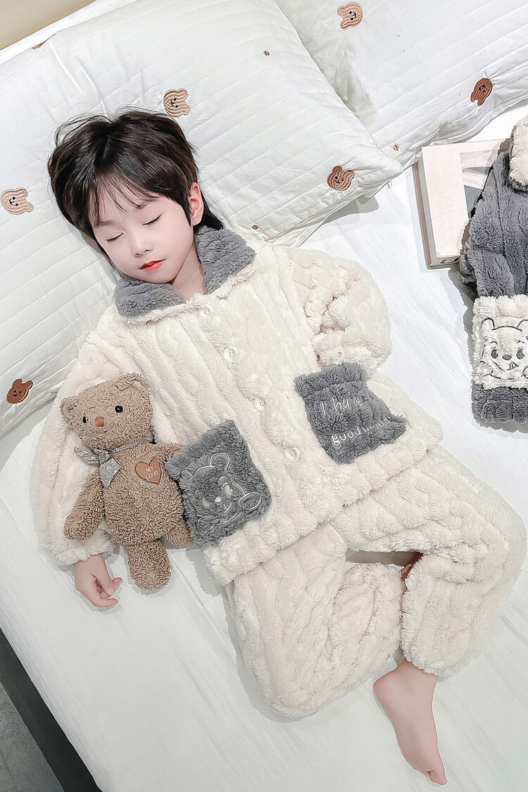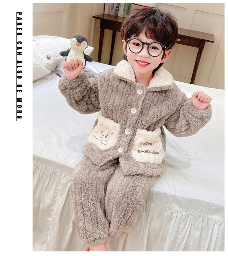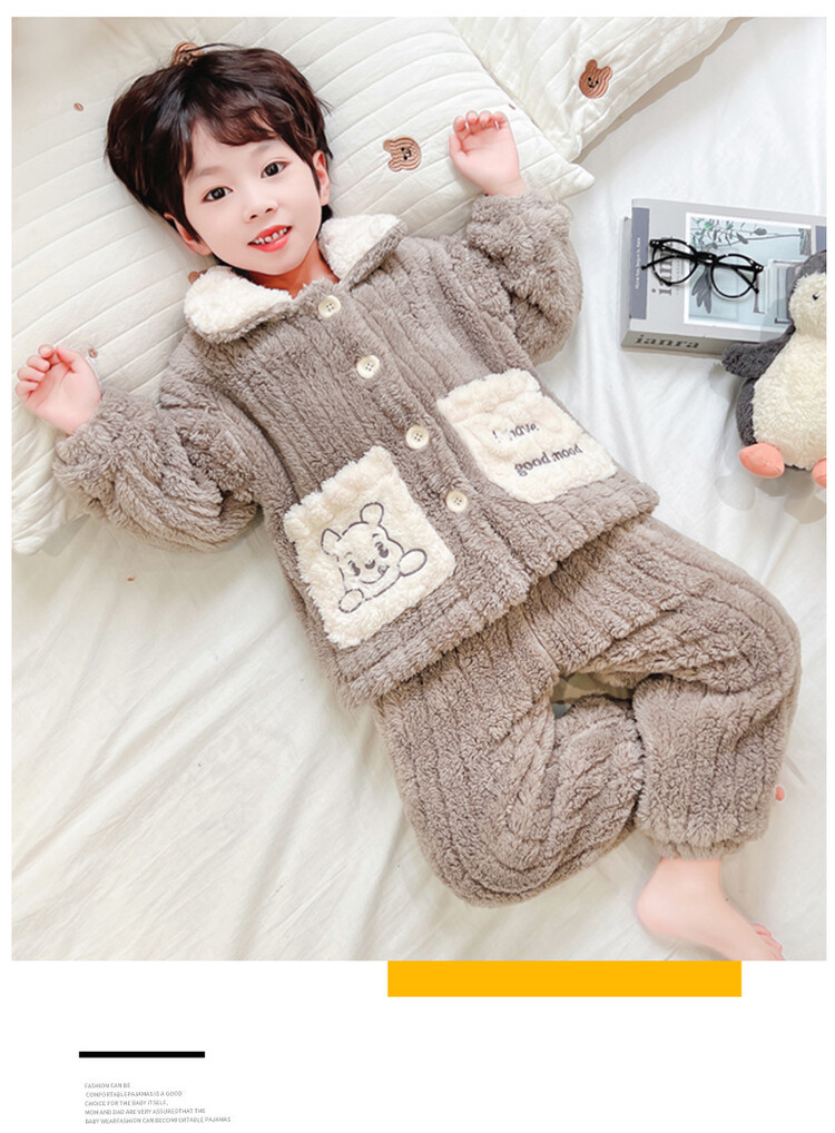 남아용 가을 겨울 플란넬 코랄벨벳 2025 신상 아동 홈웨어 세트 유아 남아 세트 투피스