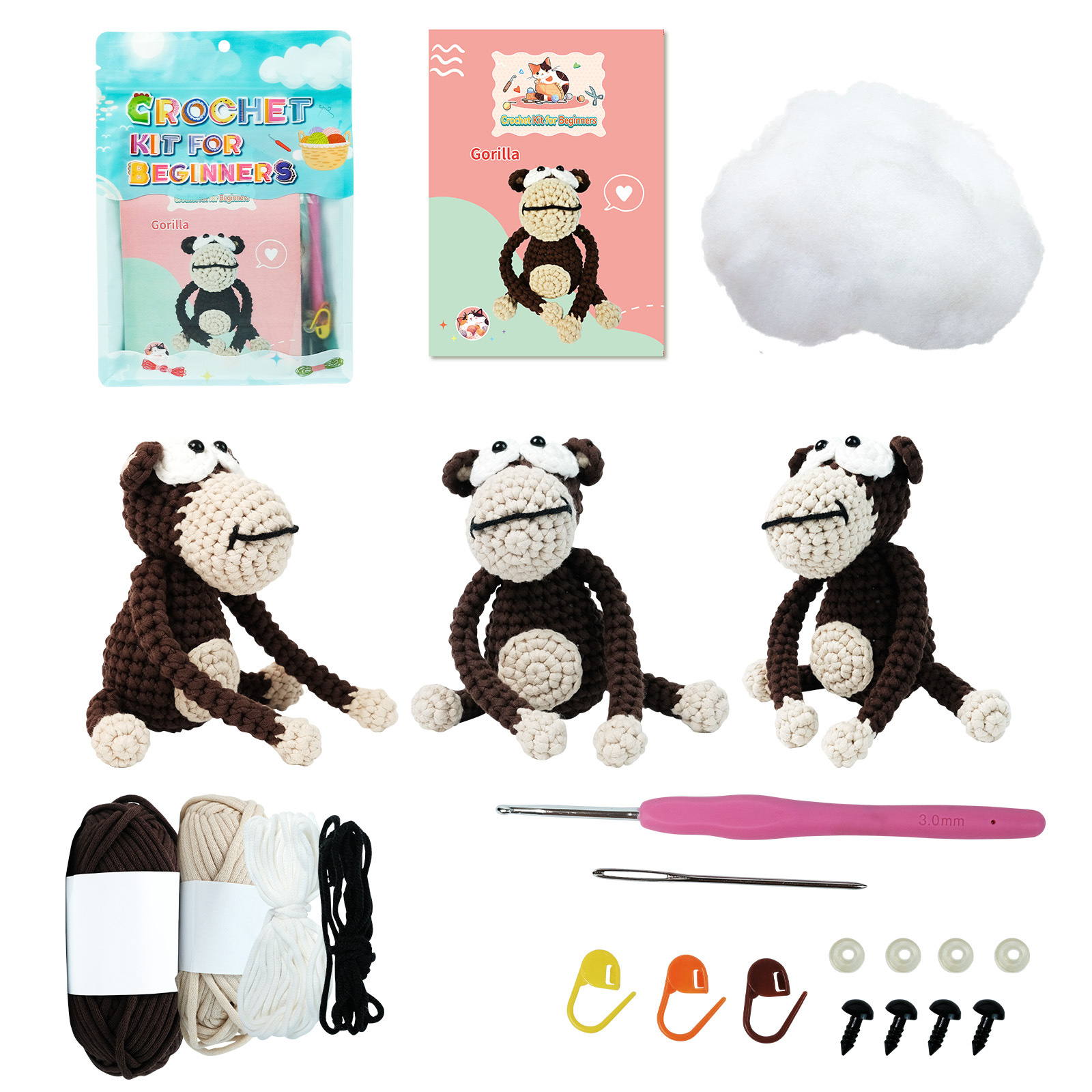 국경 간 뜨거운 고릴라 인형 크로 셰 뜨개질 소재 패키지 영어 수동 다이어그램 간단한 초보자 수제스토어 가기