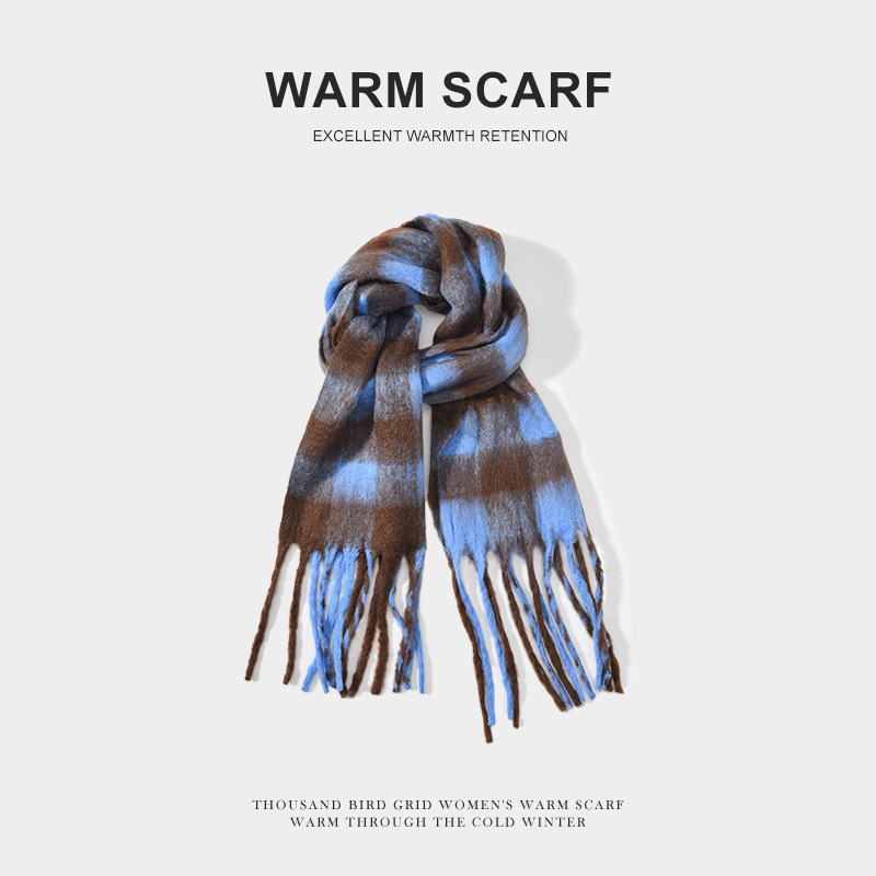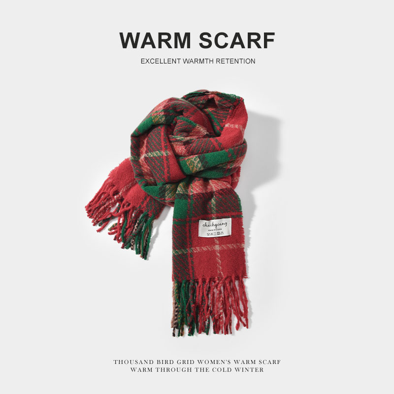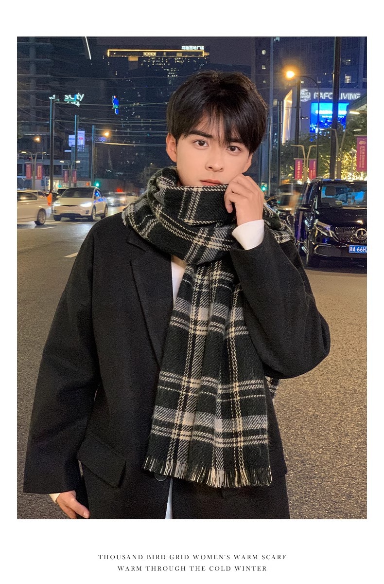 겨울 따뜻한 한국 스타일 올 매치 학생 남자 격자 무늬 끈 술 스카프 니트 두꺼운 방한 목도리 스카프