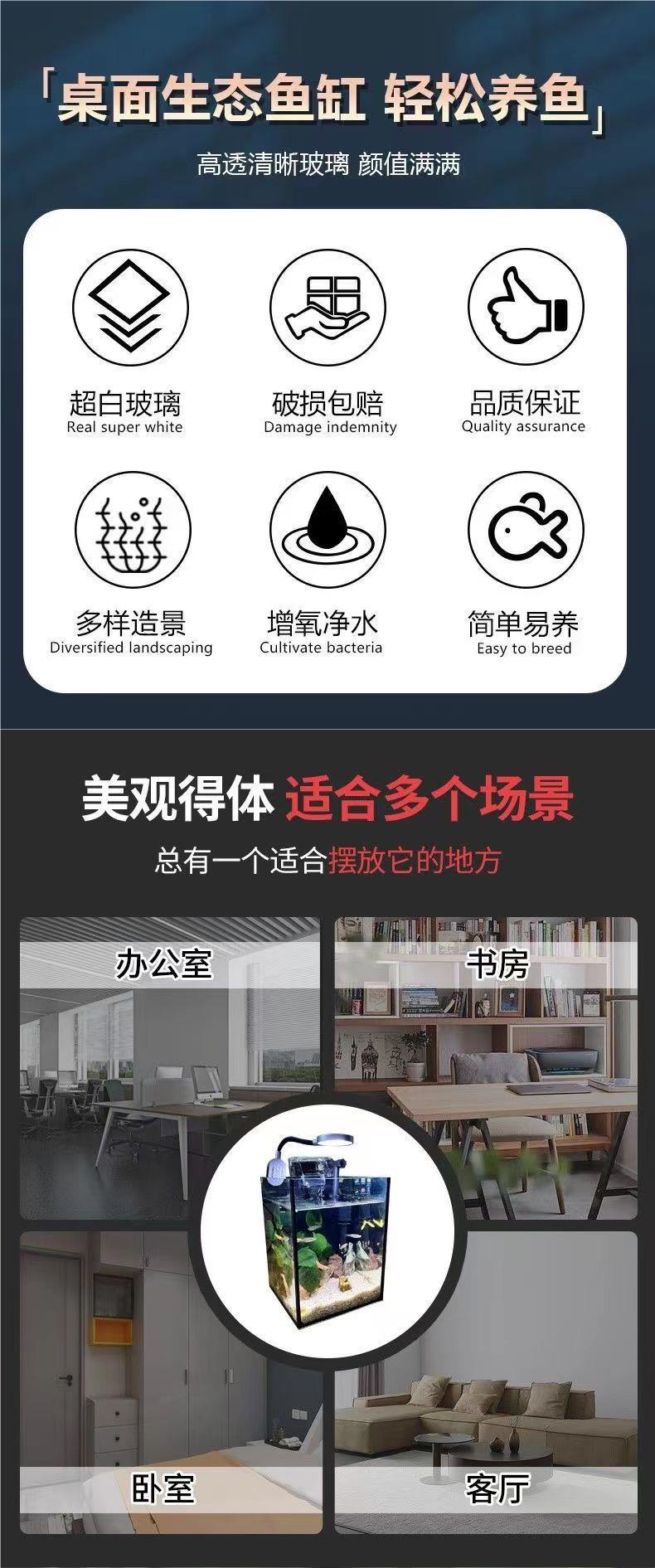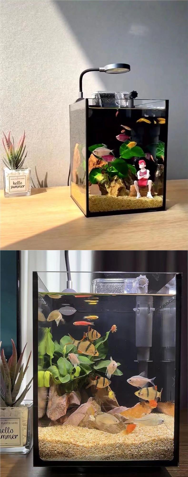 울트라 화이트 유리 물고기 탱크 조경 두꺼운 유리 버킷 물고기 탱크 데스크탑 작은 거실 재활용 생태 사무실 풍경스토어 가기