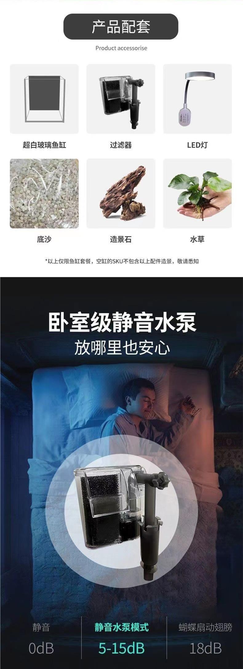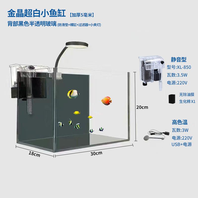• 22*14*18 (확장) 초백색 유리 수조 + 필터 + LED 수경 조명