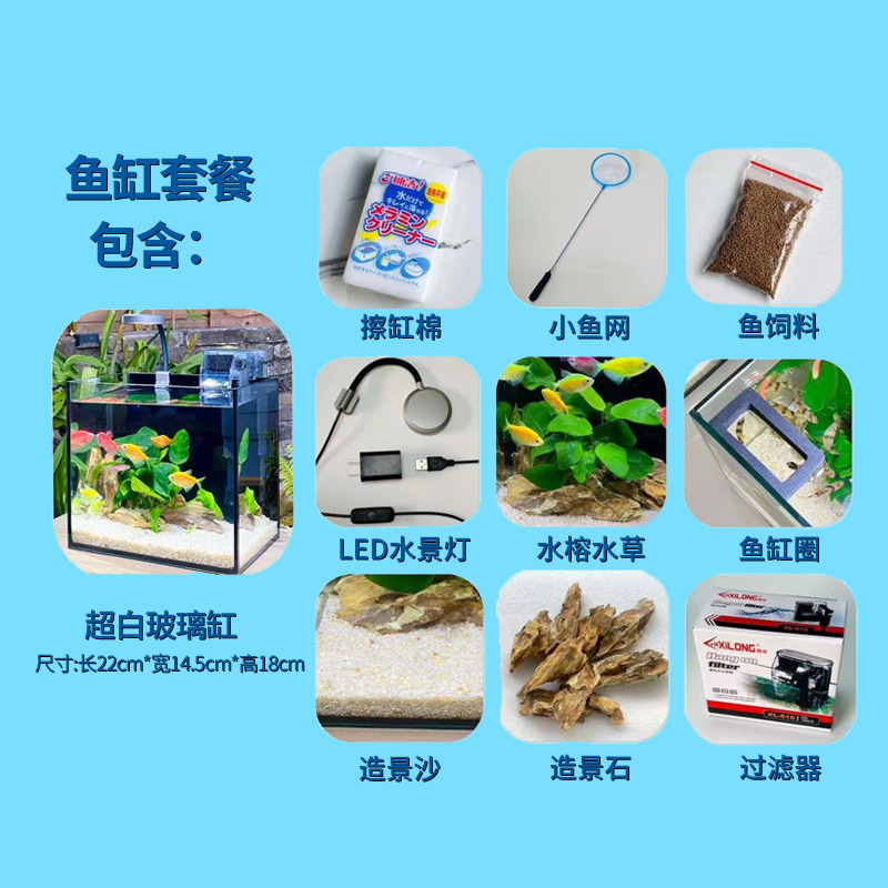 • 22*14*18(확장) 초백색 유리 수조 + 걱정 없는 조경 선물 패키지