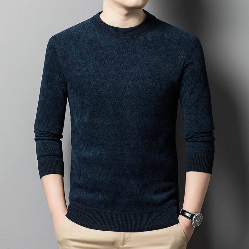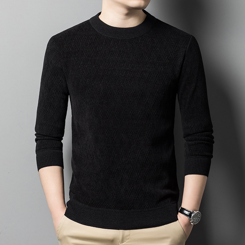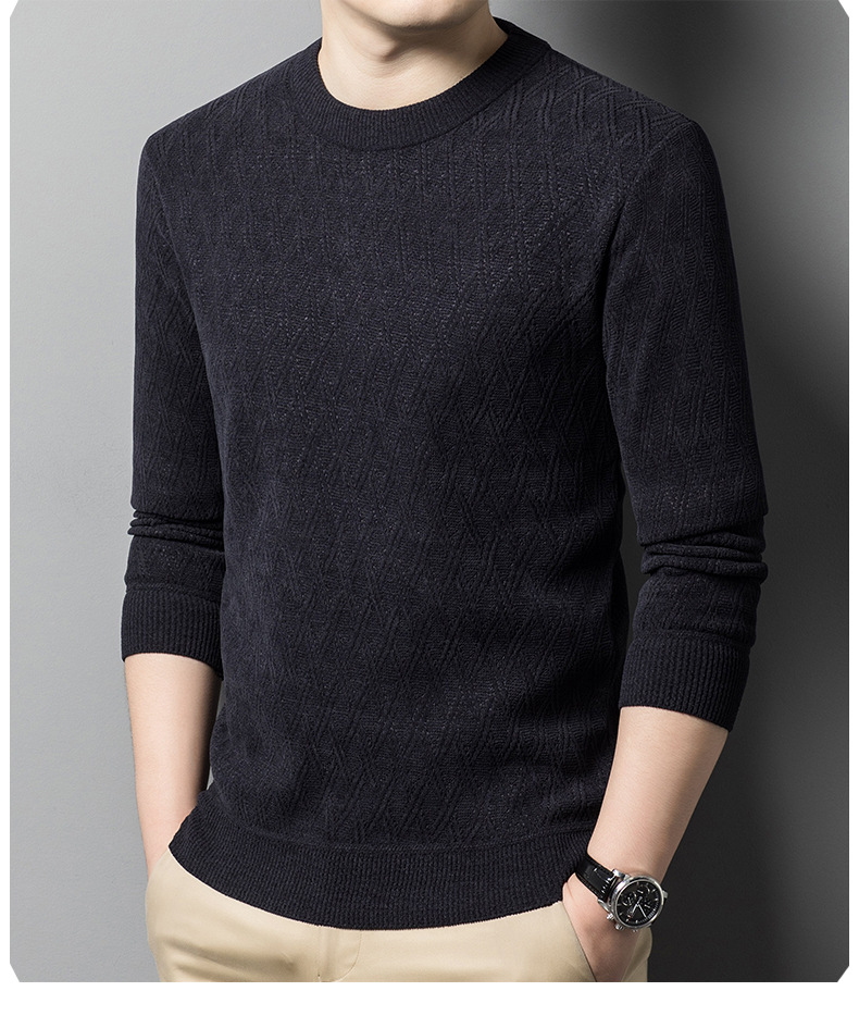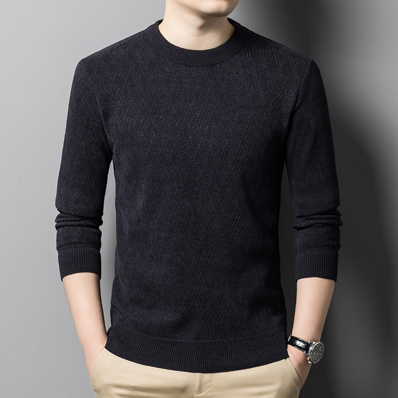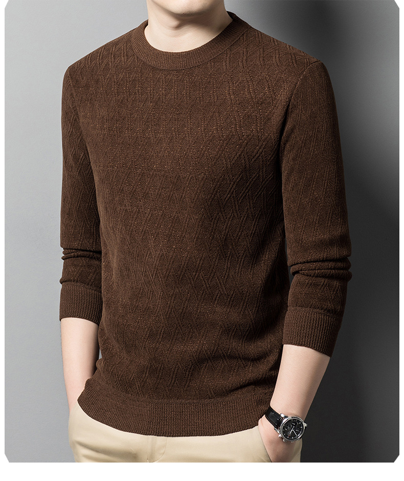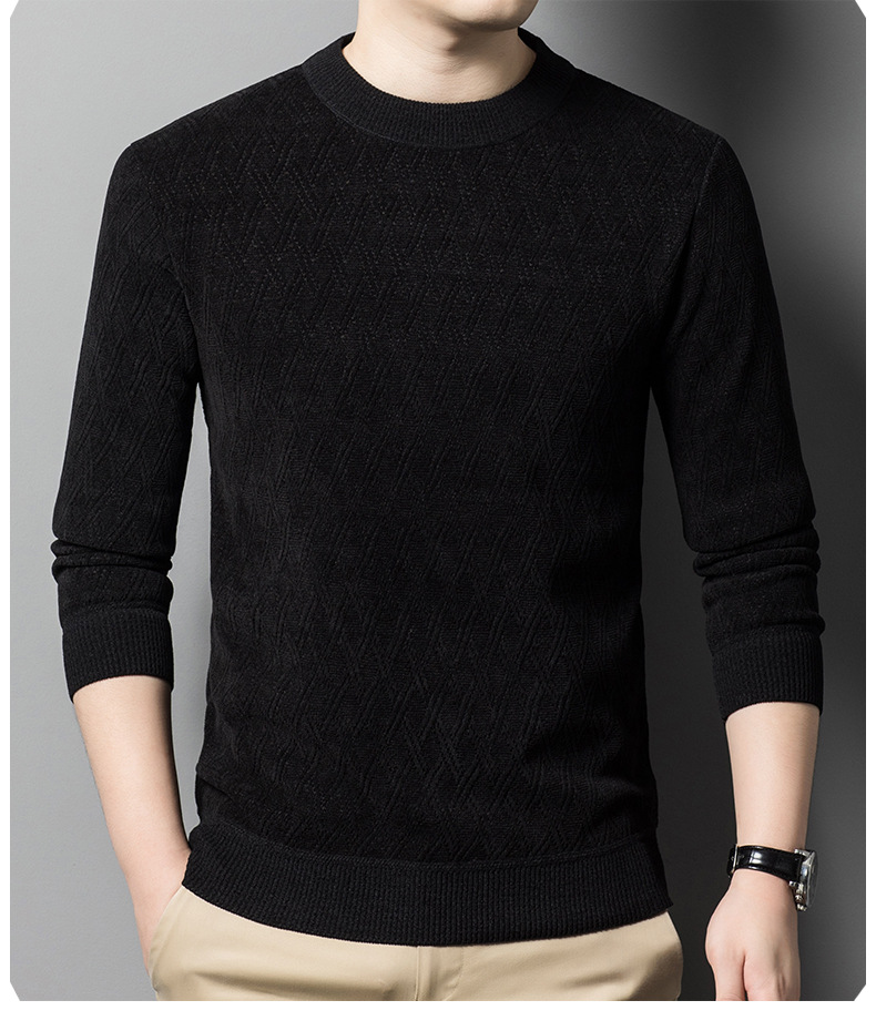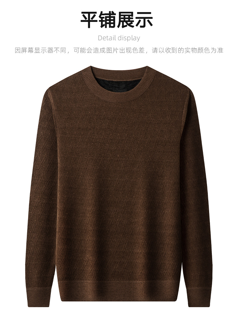 겨울 남자 기모 두꺼운 다이아몬드 자카드 원피스 벨벳 따뜻한 톱 체닐베이스 크루 넥 스웨터