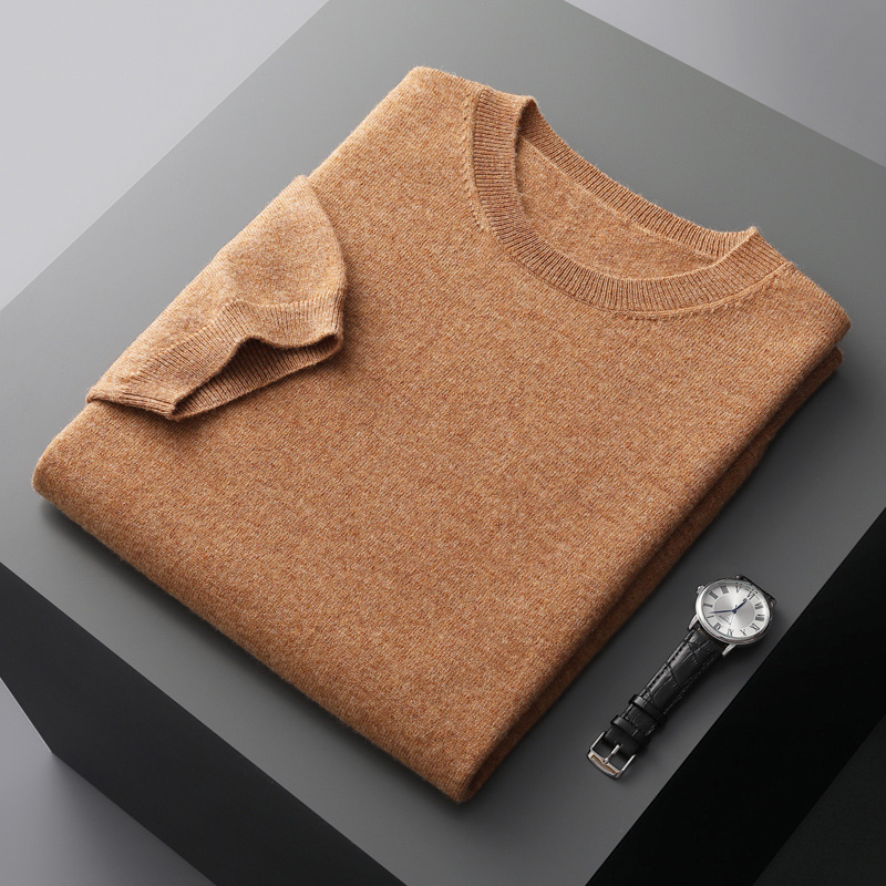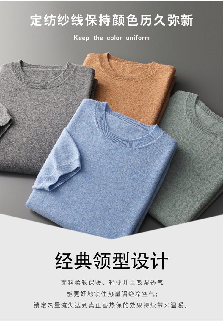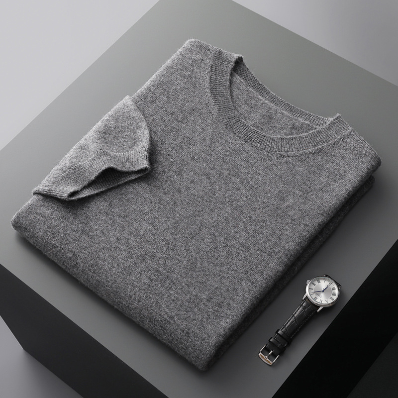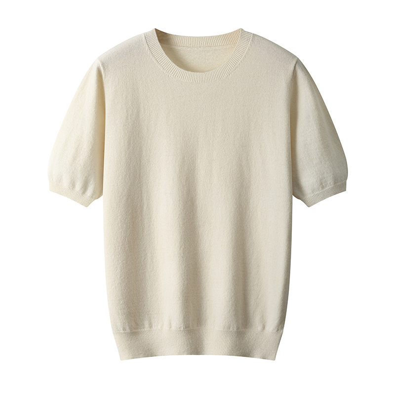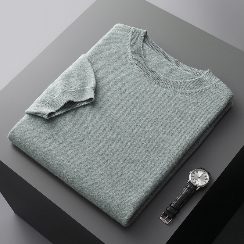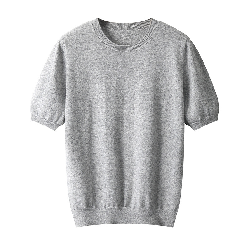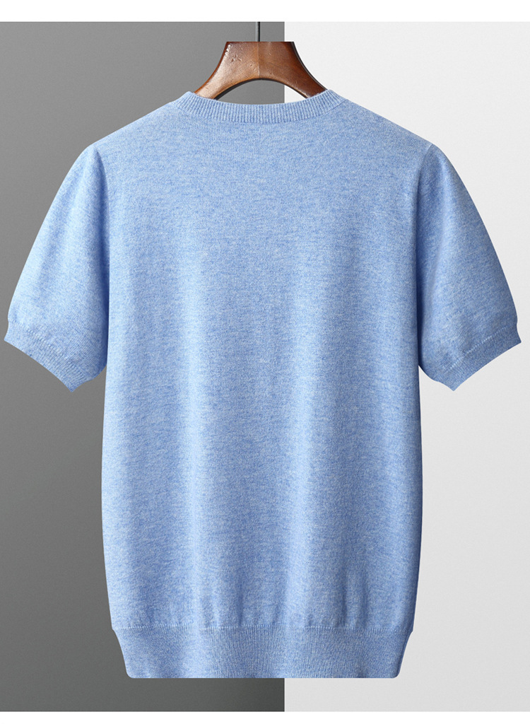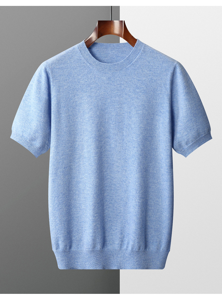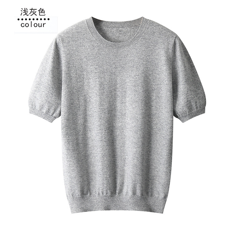 春秋新款平面纯色针织短袖T恤圆领羊毛衫男士打底套头毛衣半袖