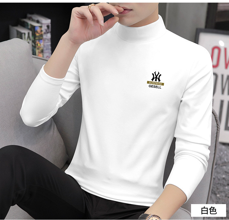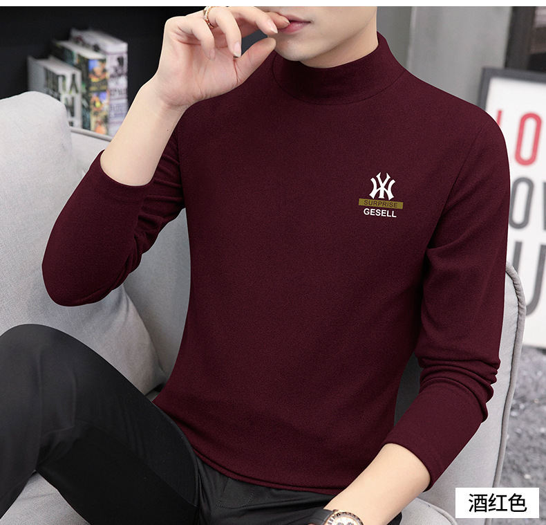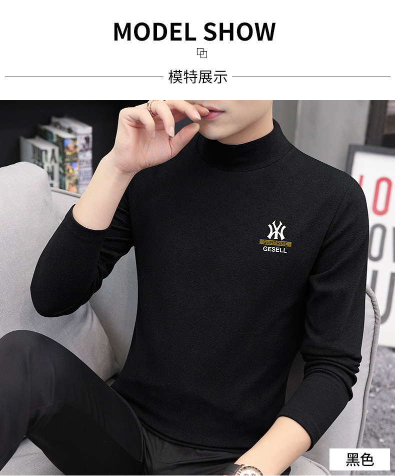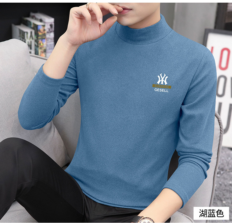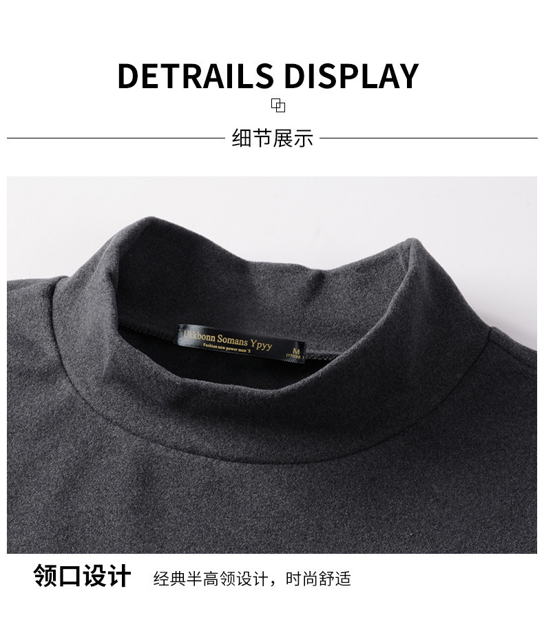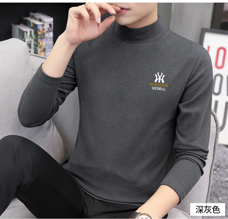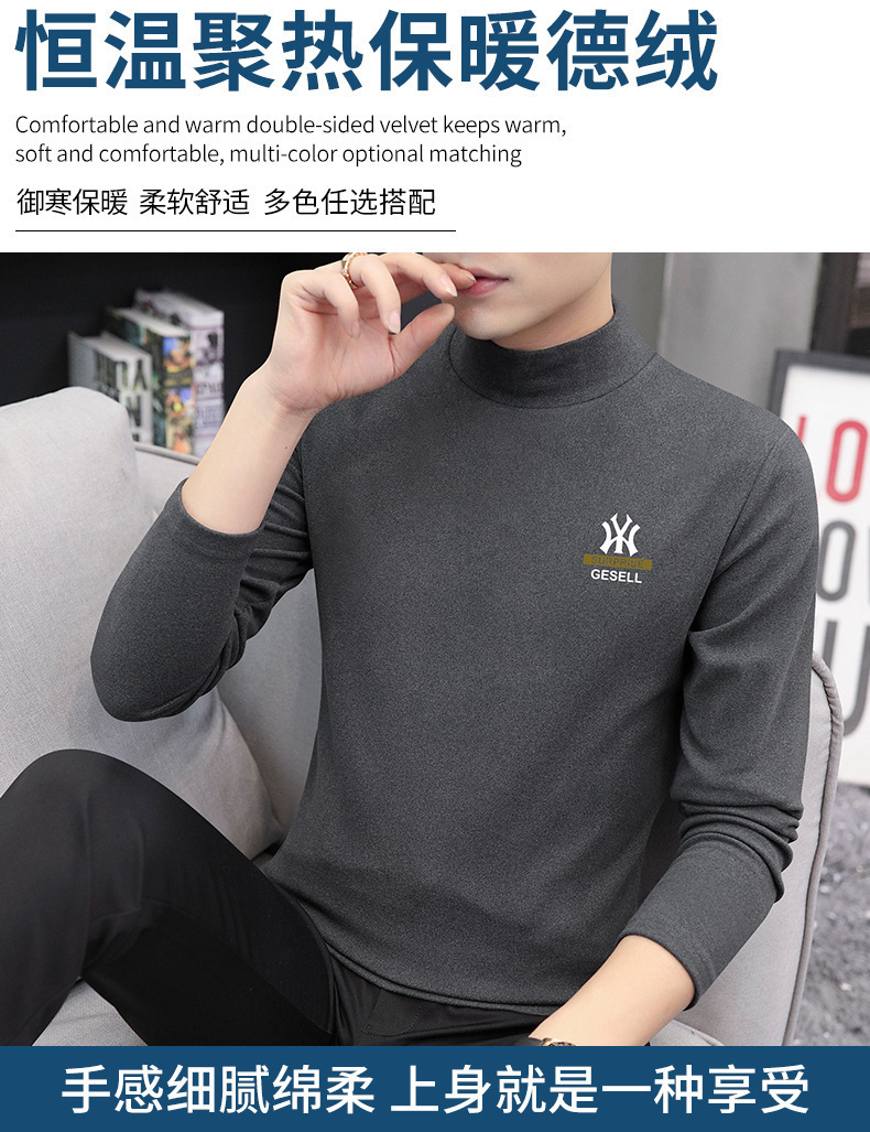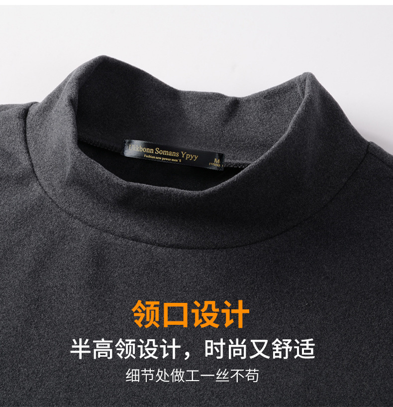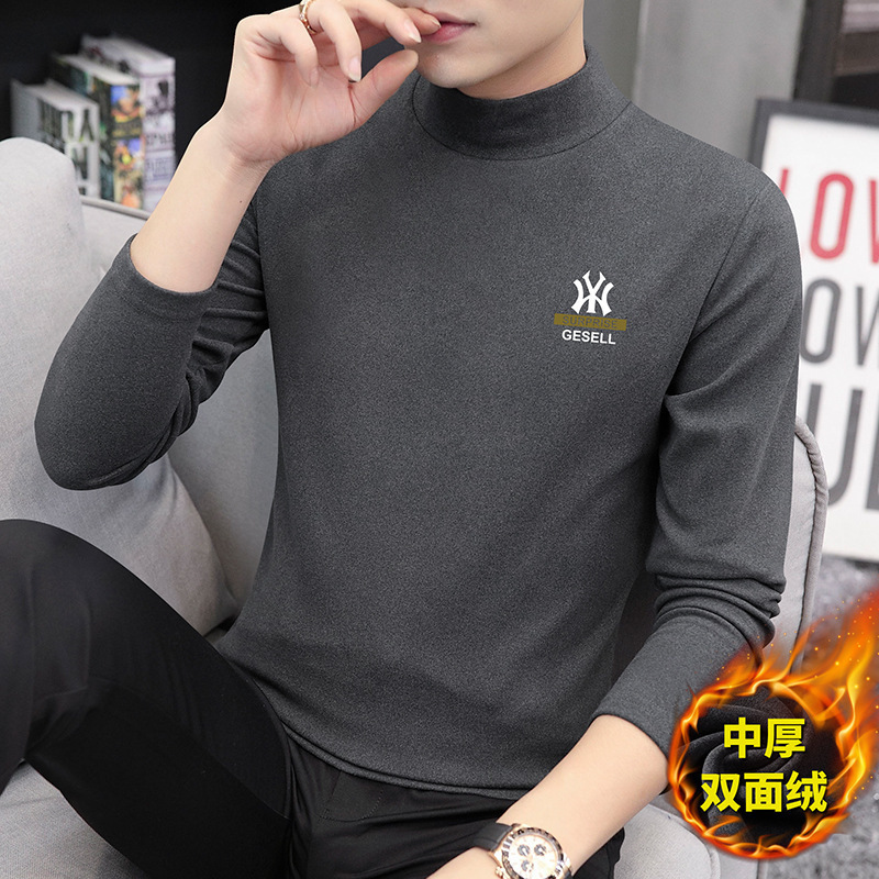 200g 양면 벨벳 세미 하이 칼라 긴팔 티셔츠 남성 가을과 겨울 새로운 기모 따뜻한 칼라베이스 셔츠 탑