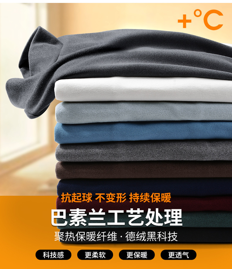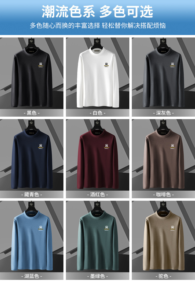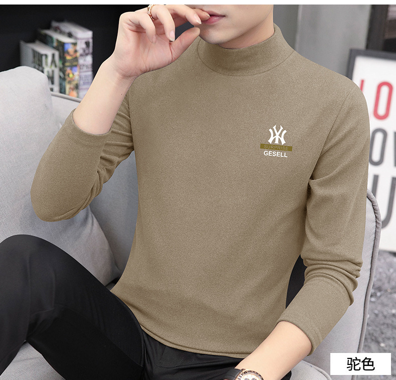 200g 양면 벨벳 세미 하이 칼라 긴팔 티셔츠 남성 가을과 겨울 새로운 기모 따뜻한 칼라베이스 셔츠 탑스토어 가기