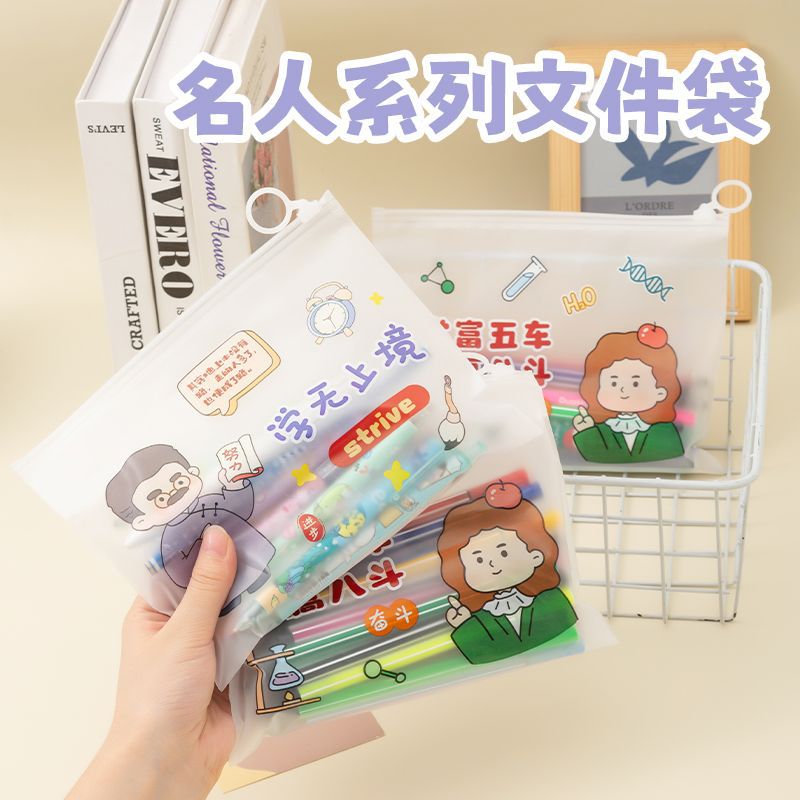 만화 연예인 파일 가방 학생 문구 영감 텍스트 저장 가방 대용량 A5 지퍼 사무실 정보 가방