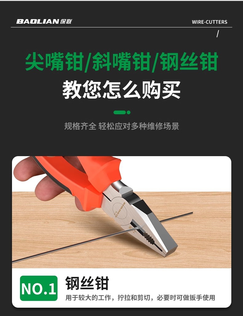 Baolian vice wire 펜치 다기능 가정용 특수 도구 Daquan 전기 기사 비스듬한 입 날카로운 입 산업용 펜치스토어 가기