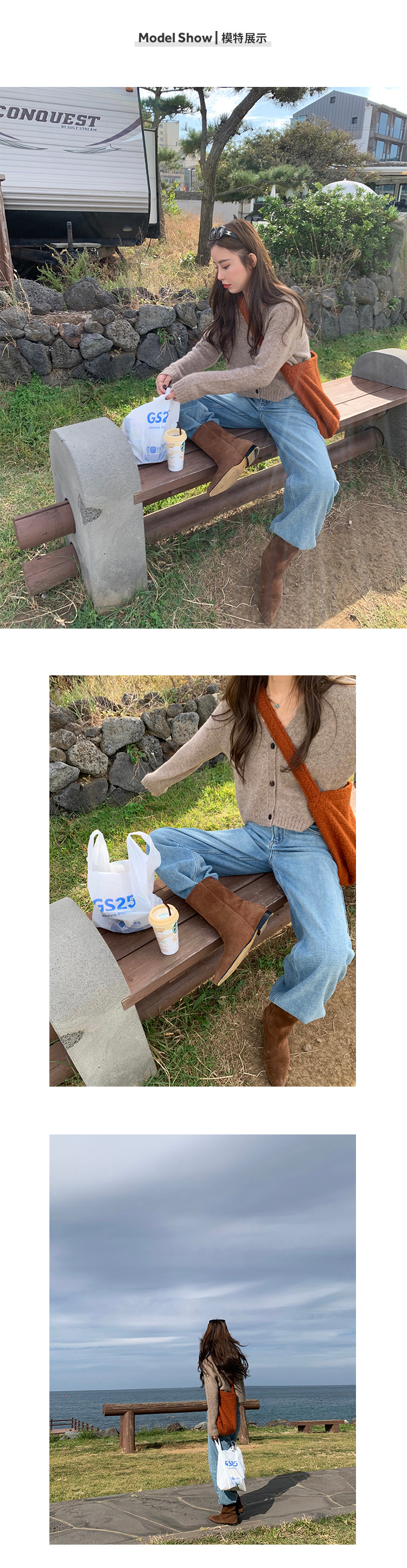 Cowhide Edition ~ 정품 가죽 한국 스웨이드 포인팅 발가락 부츠 낮은 힐 플랫 하단 레트로 유행 와이드 배럴 마틴 부츠 짧은 부츠스토어 가기