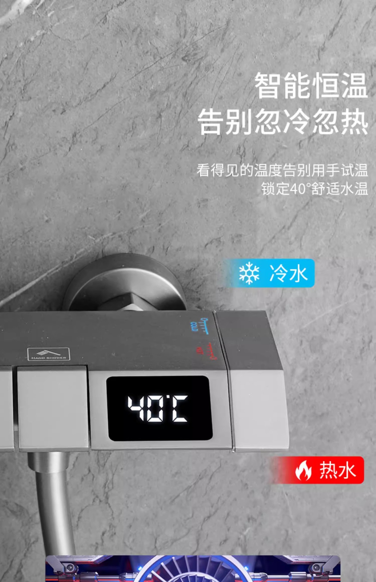 [헤어 세대 지원] 디지털 디스플레이 샤워 전체 구리 지능형 일정한 온도 가정용 압력 욕실 샤워 세트