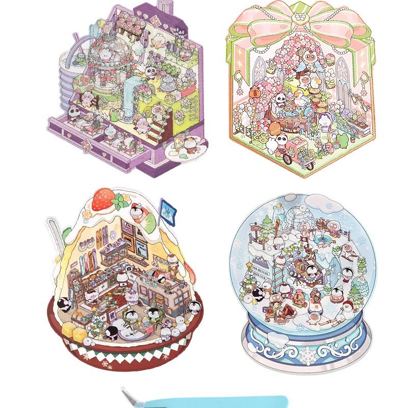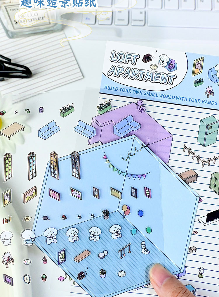 Senyou 3D 입체 오두막 풍경 스티커 한국 DIY 감압 마이크로 스케일 장면 손 계정 스티커