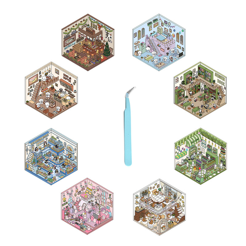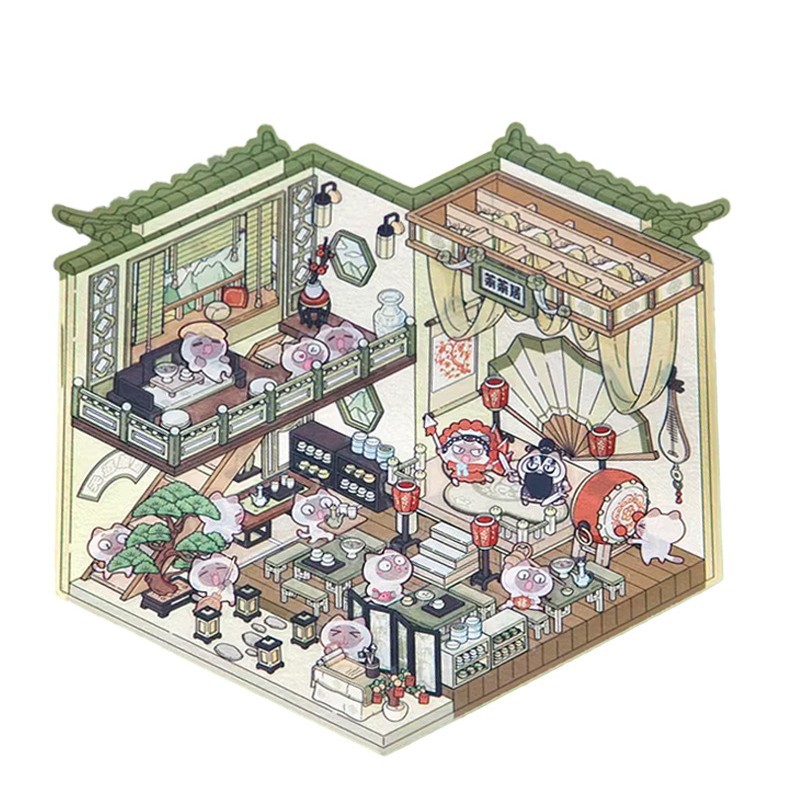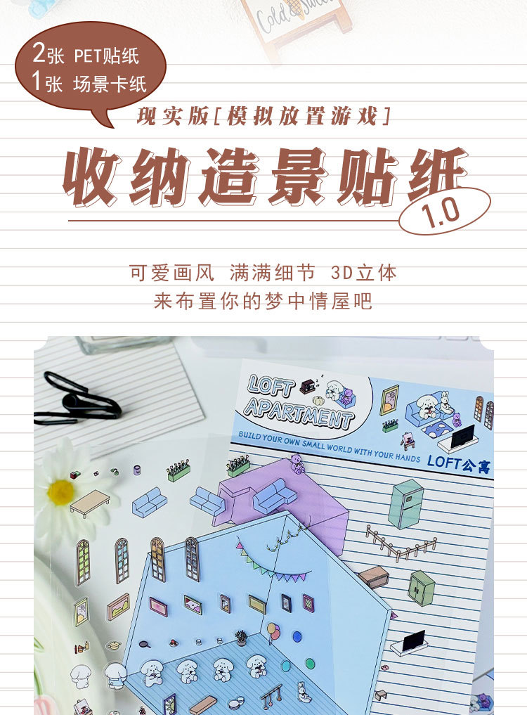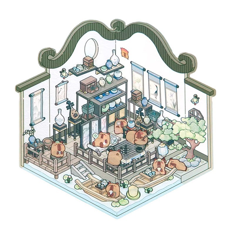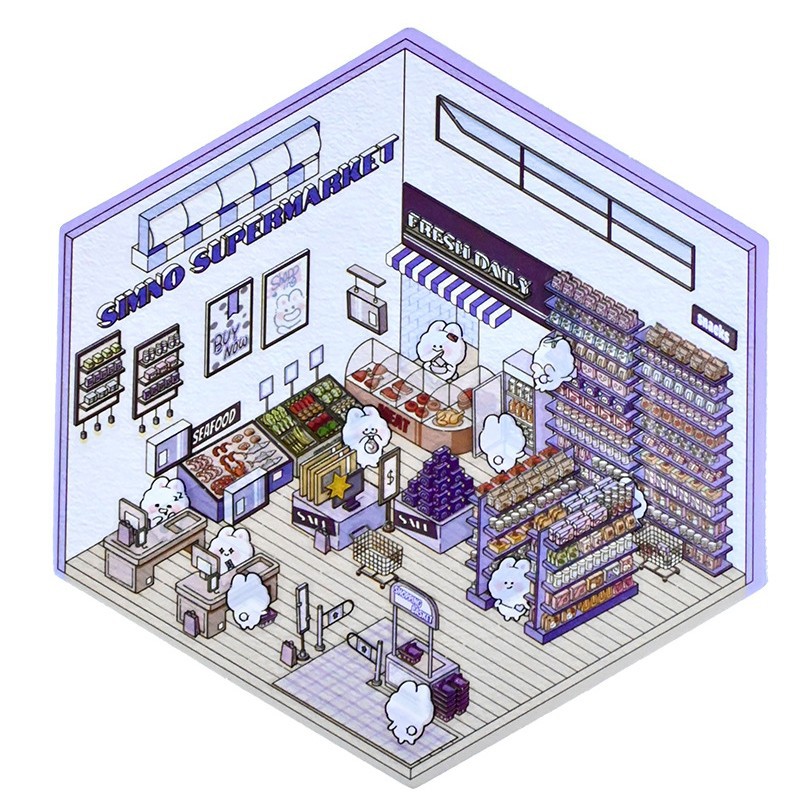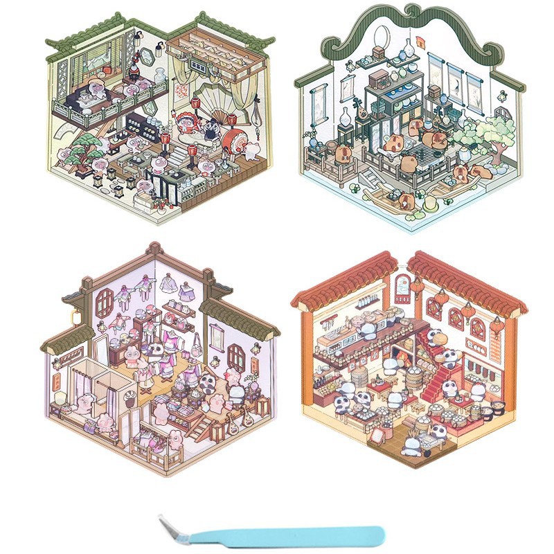 Senyou 3D 입체 오두막 풍경 스티커 한국 DIY 감압 마이크로 스케일 장면 손 계정 스티커스토어 가기