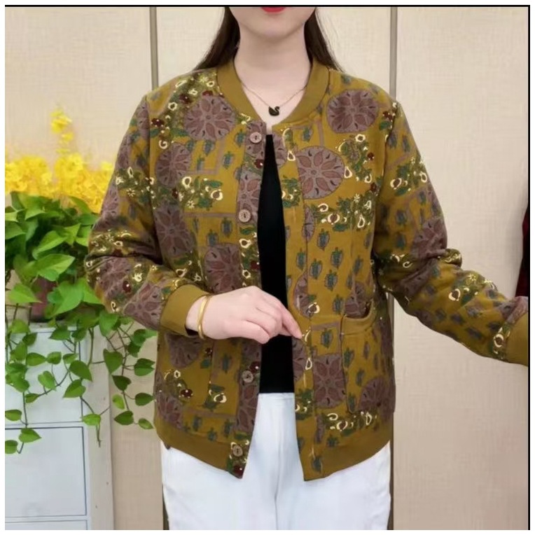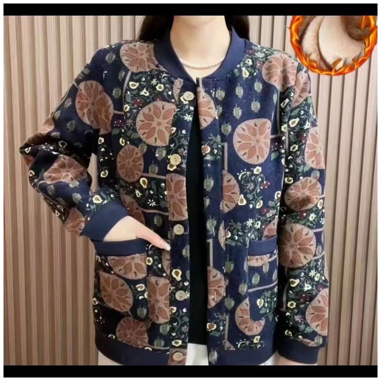 따뜻한 가을 세련된 기모 2024 인쇄 재킷 유행 느슨한 올매치 엄마 복고풍 캐주얼 자켓 여성 의류스토어 가기