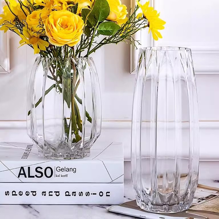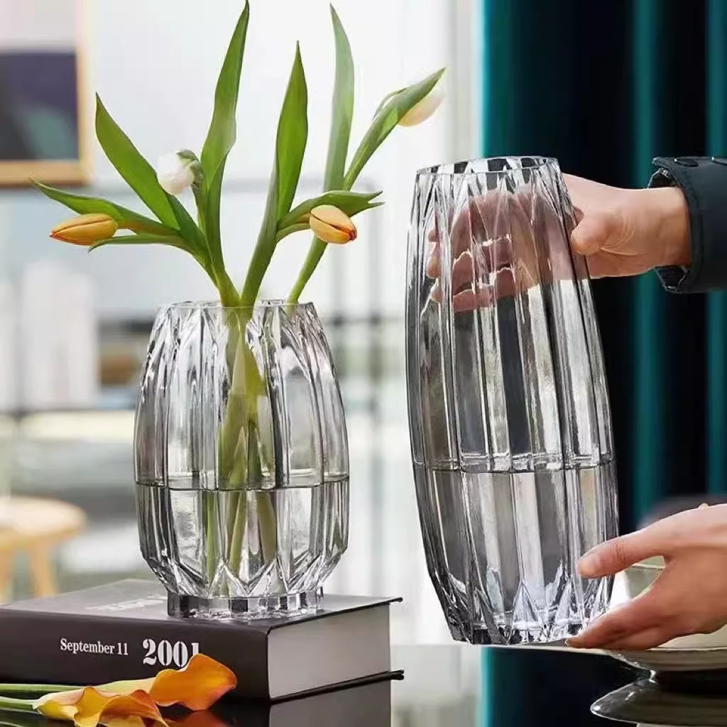 무료 배송 노르딕 라이트 럭셔리 유리 꽃병 투명 거실 꽃 정리 물 기르기 꽃 장식 꽃 장식품