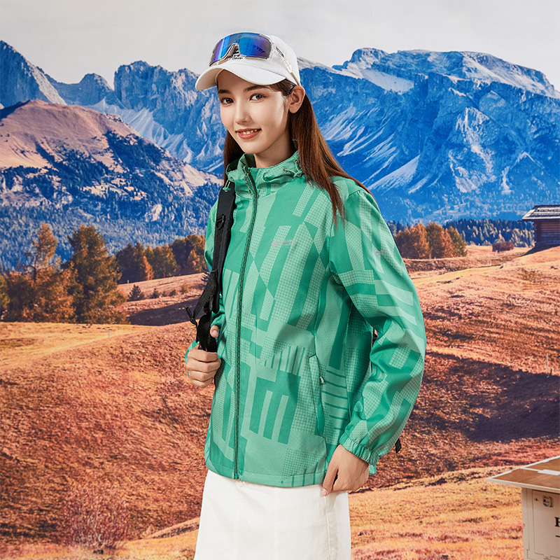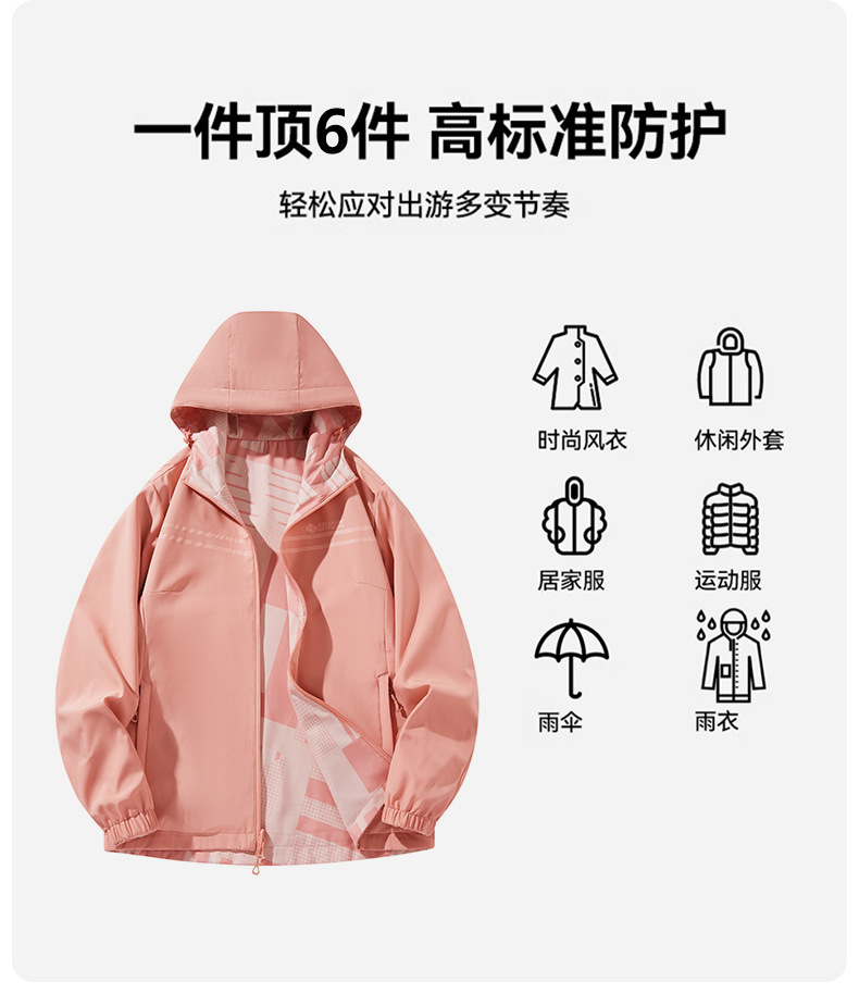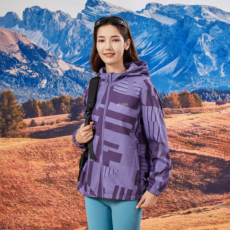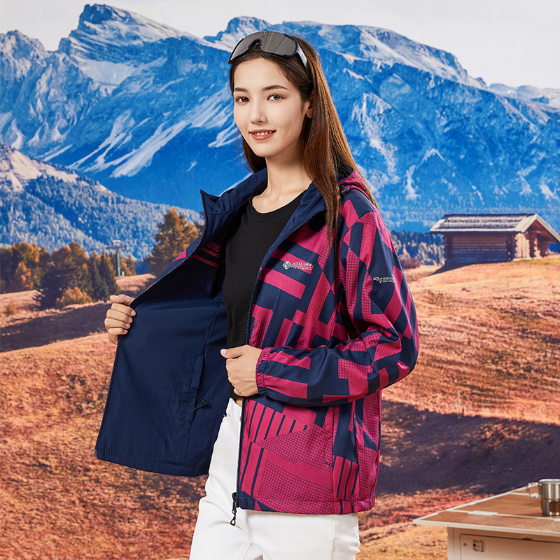 야외 폭행 의류 여성 양면 후드 방수 재킷 패션 위장 등산 의류 여행 그룹 인쇄 로고