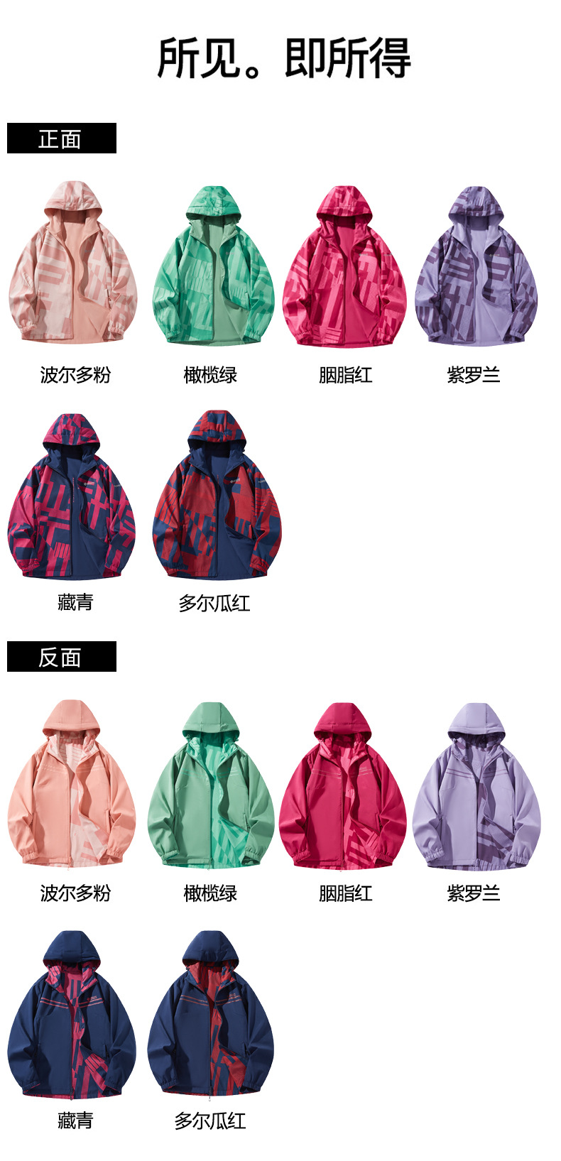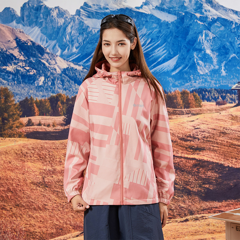 야외 폭행 의류 여성 양면 후드 방수 재킷 패션 위장 등산 의류 여행 그룹 인쇄 로고스토어 가기