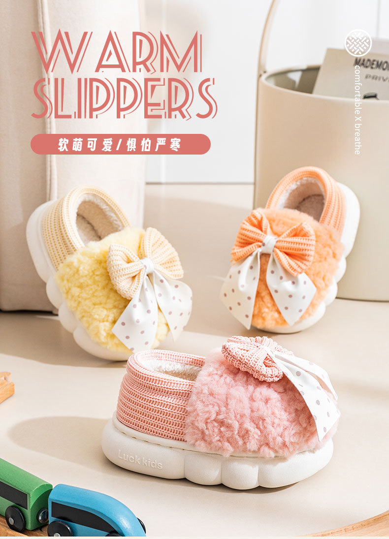 어린이 면화 신발 2024년 신상 가을 겨울 남아 여아 아기용 집안 면화 슬리퍼 리본 장식 따뜻한 신발
