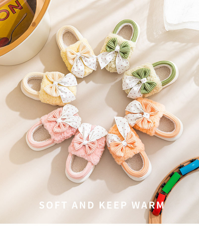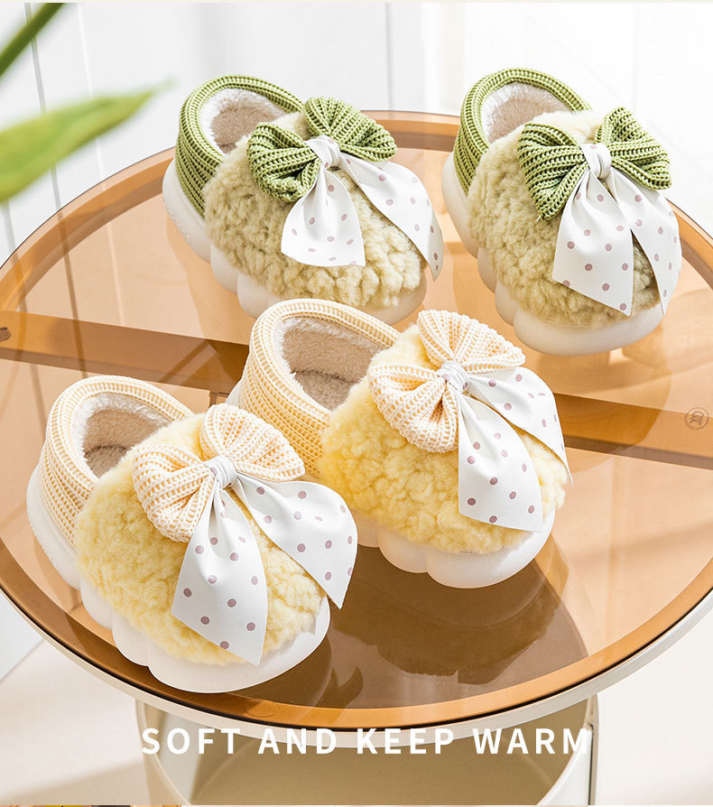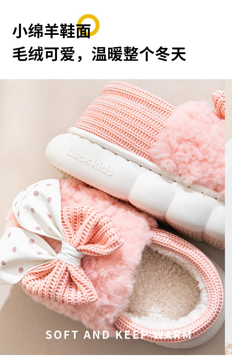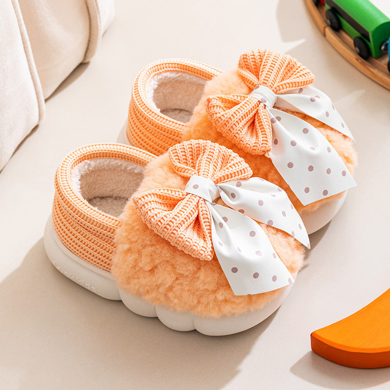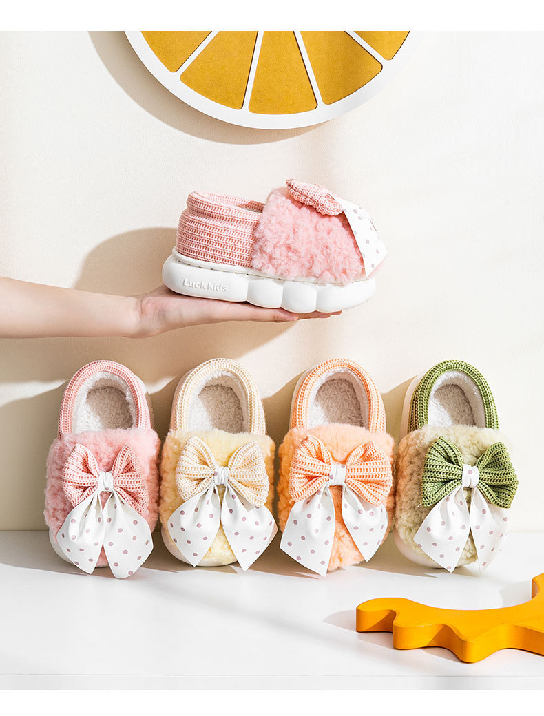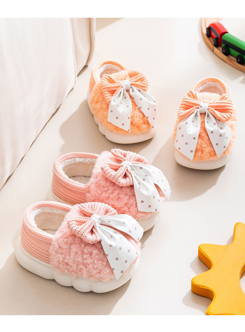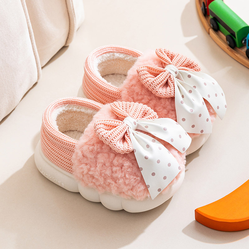 어린이 면화 신발 2024년 신상 가을 겨울 남아 여아 아기용 집안 면화 슬리퍼 리본 장식 따뜻한 신발스토어 가기