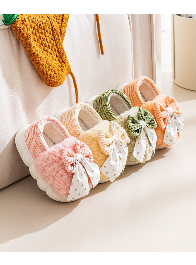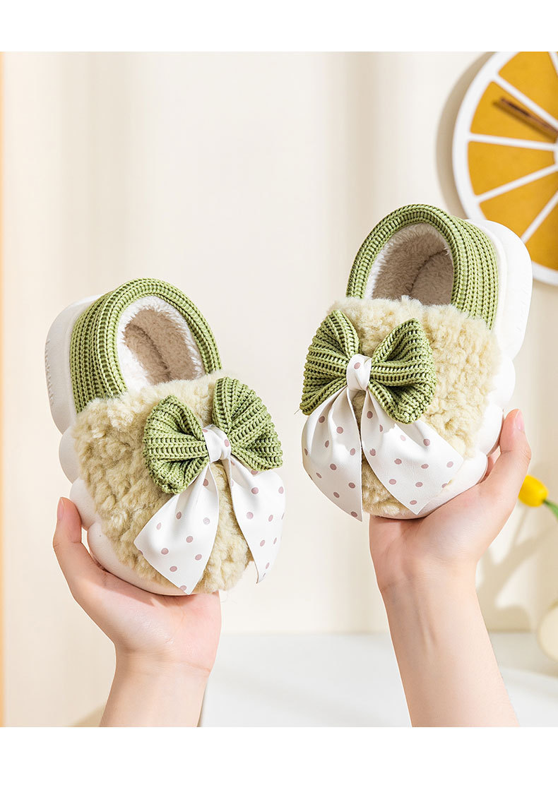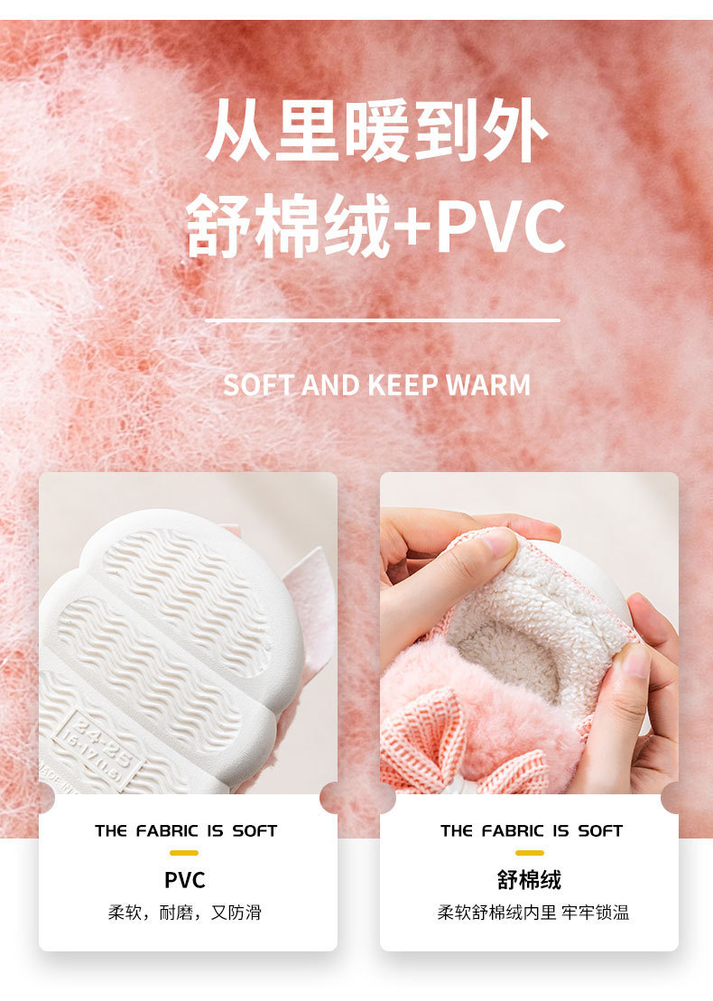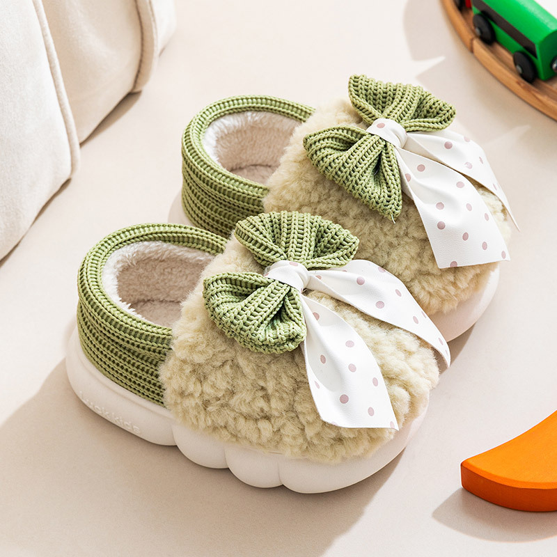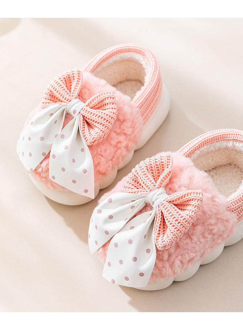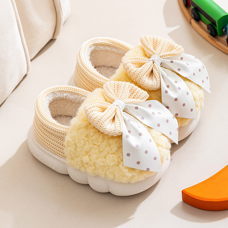 어린이 면화 신발 2024년 신상 가을 겨울 남아 여아 아기용 집안 면화 슬리퍼 리본 장식 따뜻한 신발스토어 가기