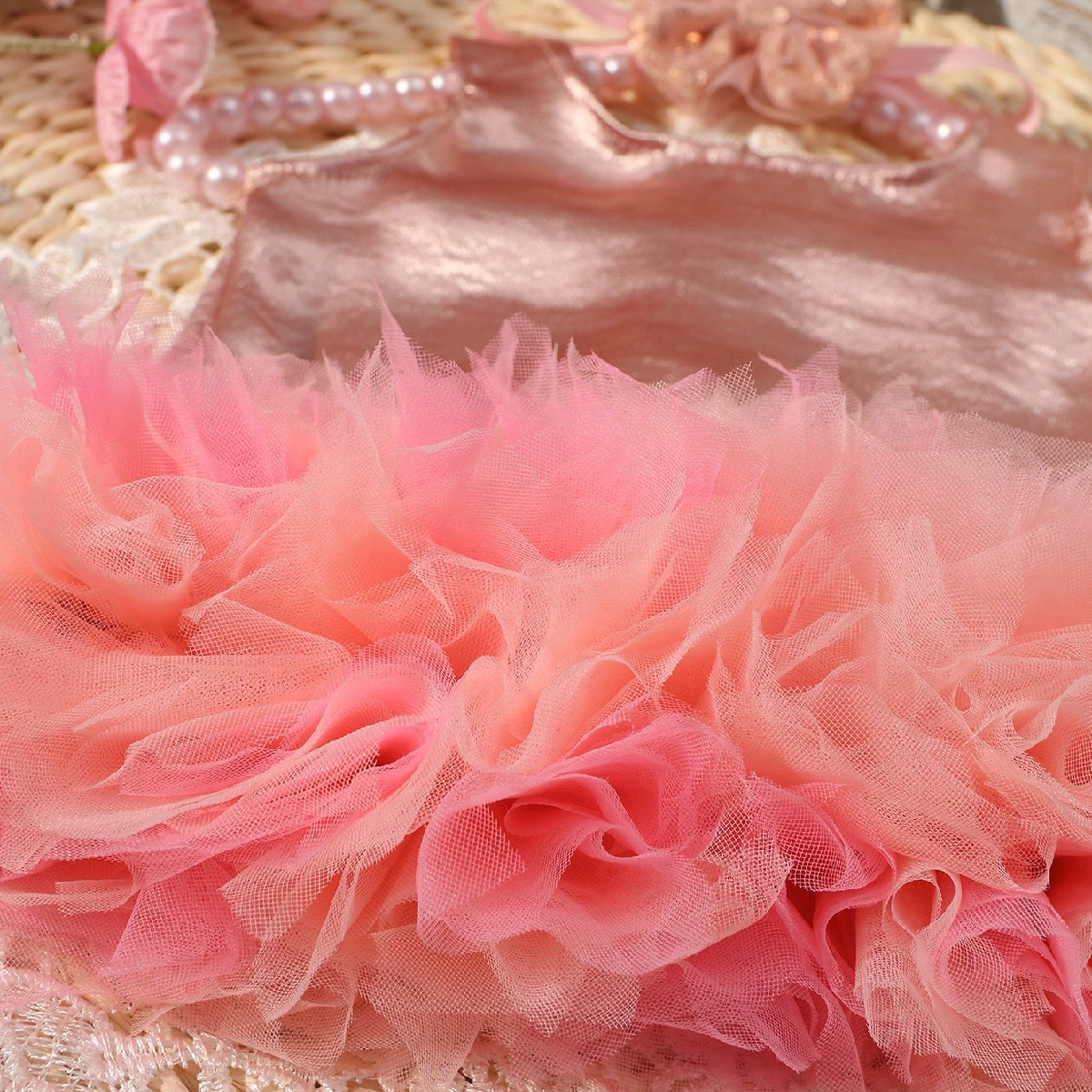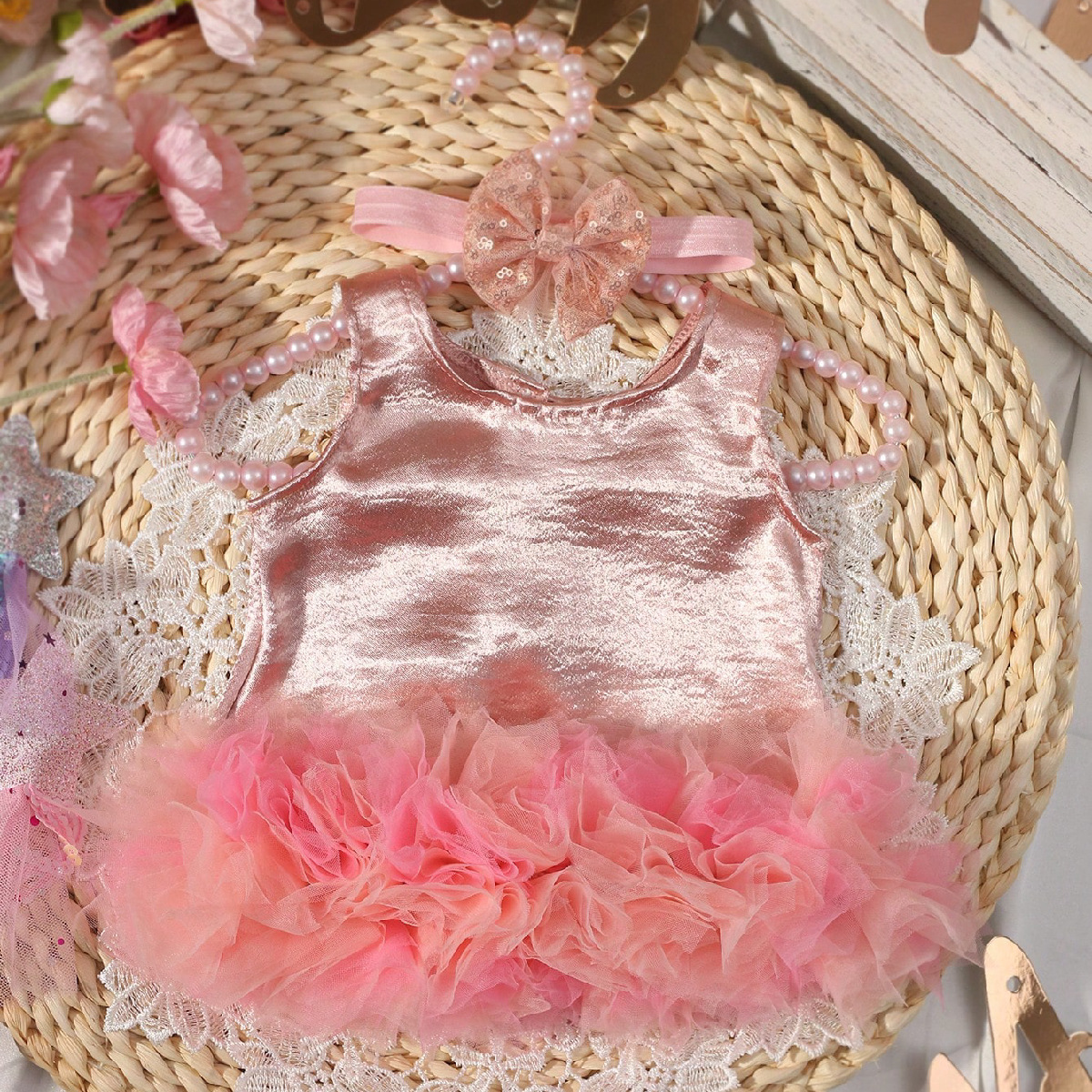 국경 간 신생아 사진 의류 아기 소녀 그라디언트 메쉬 스커트 활 헤어 밴드 투피스 세트