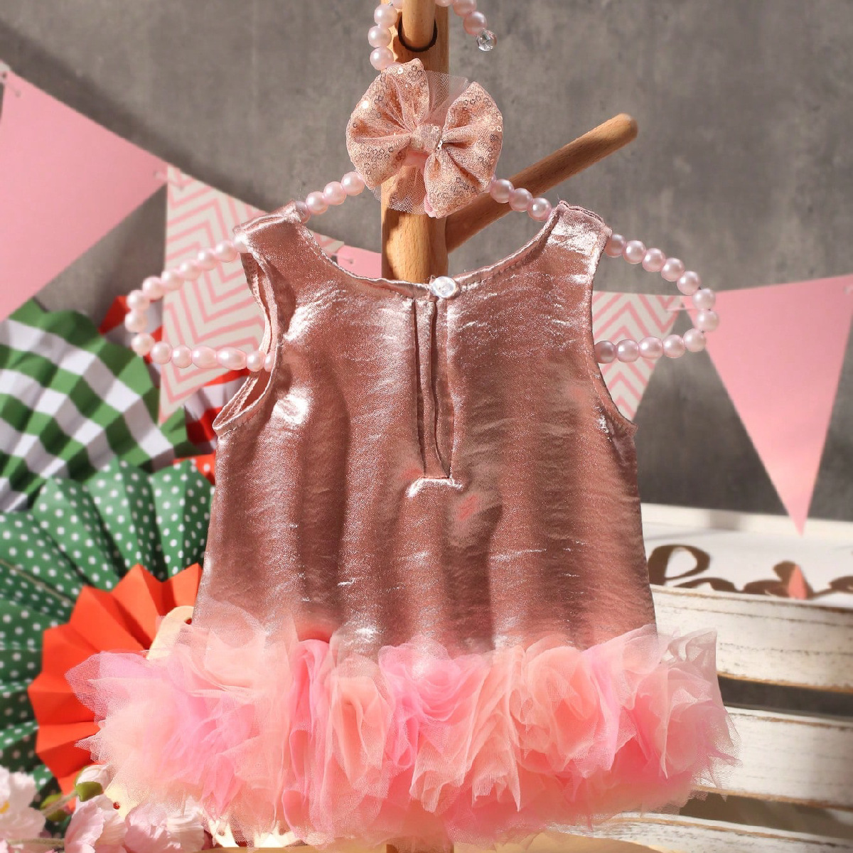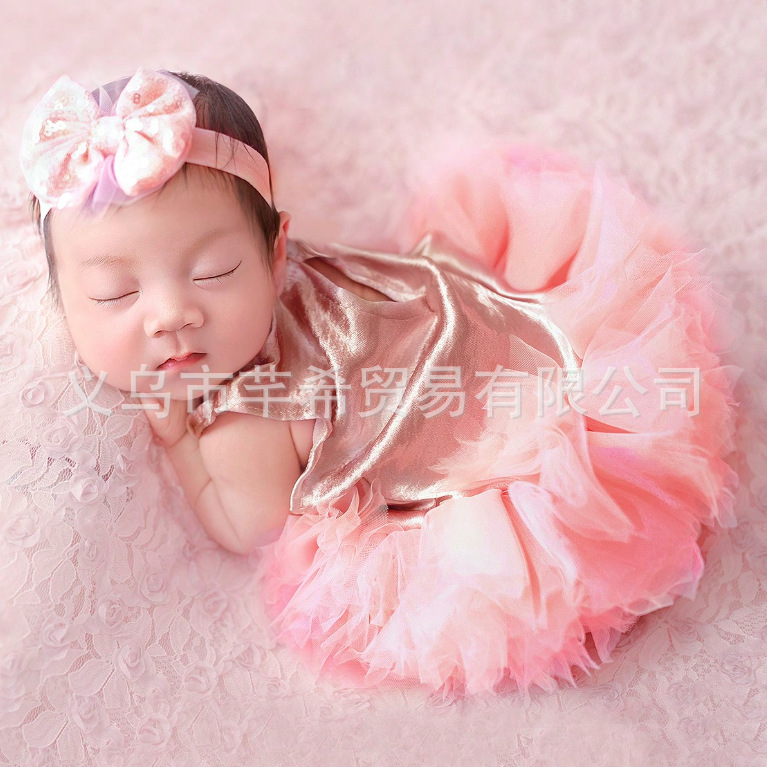 국경 간 신생아 사진 의류 아기 소녀 그라디언트 메쉬 스커트 활 헤어 밴드 투피스 세트스토어 가기