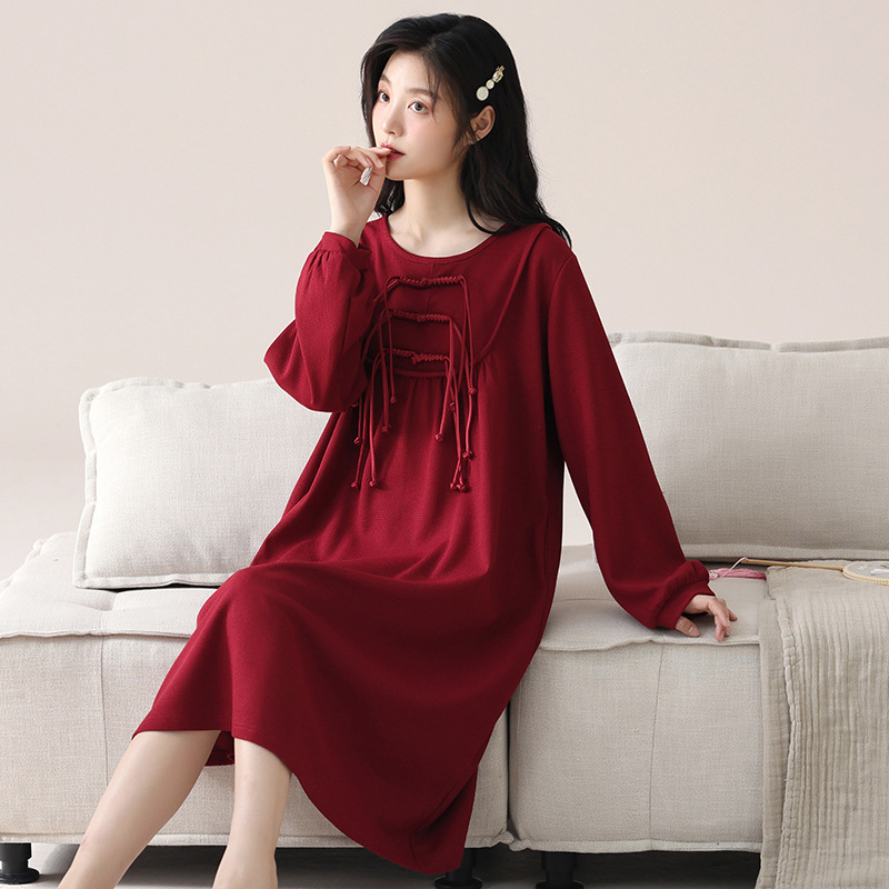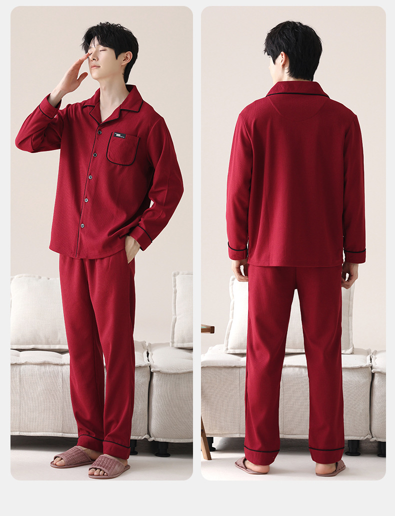 커플 잠옷 봄과 가을 순면 긴팔 잠옷 여성 신혼의 결혼식 붉은 생활 순면 홈 의류 세트