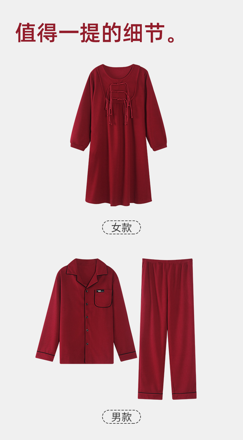 커플 잠옷 봄과 가을 순면 긴팔 잠옷 여성 신혼의 결혼식 붉은 생활 순면 홈 의류 세트스토어 가기