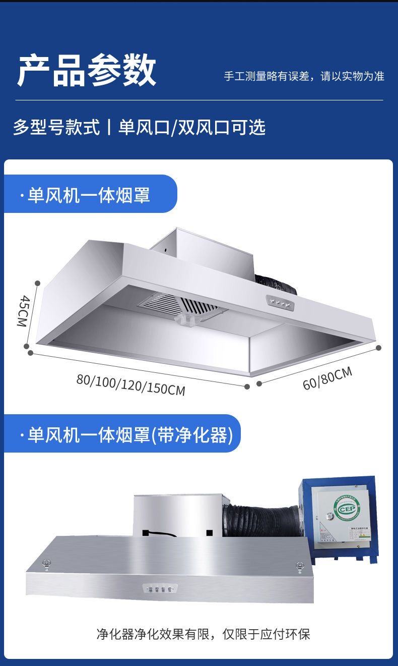 올인원 기계 정화 장작 호텔 지구 난로 커버 농촌 범위 후드 주방 대형 흡입 스테인레스 스틸 상업 연기 배기