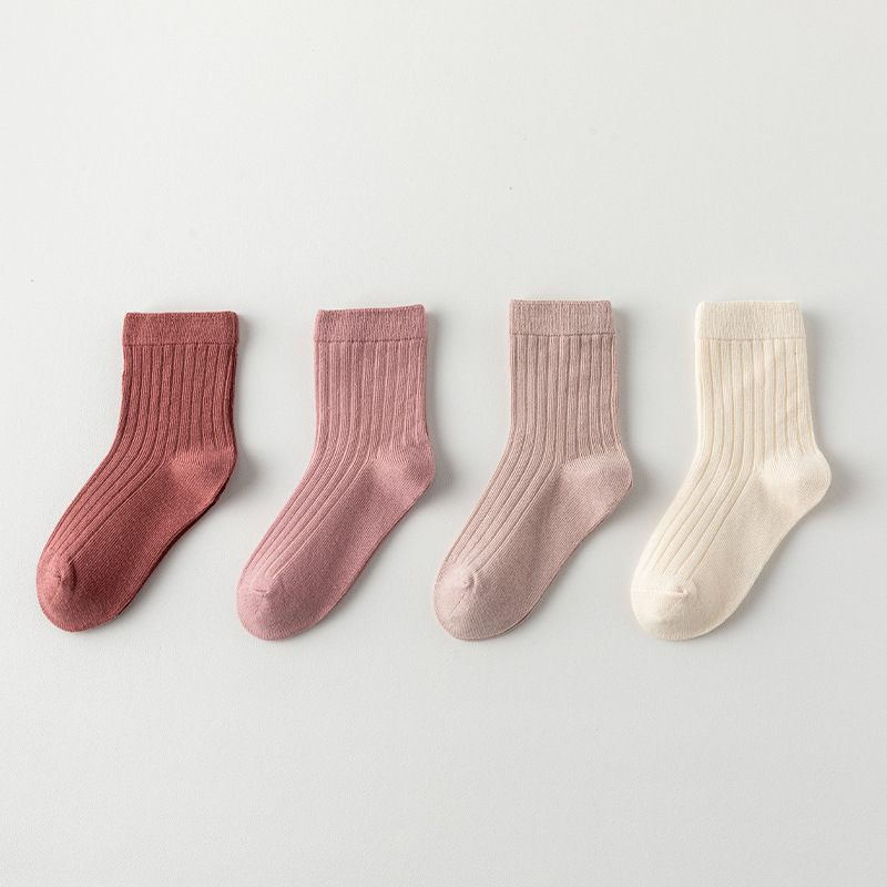 어린이 양말 봄과 가을 소년 더블 바늘 단색 양말 소녀 한국 모란 디 컬러 튜브 양말 제조 업체 도매스토어 가기