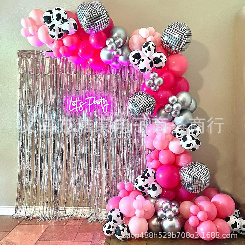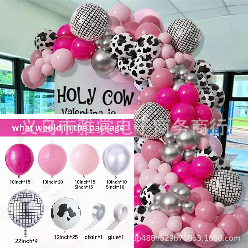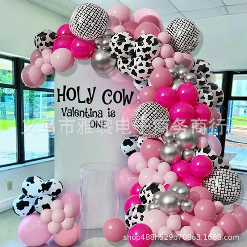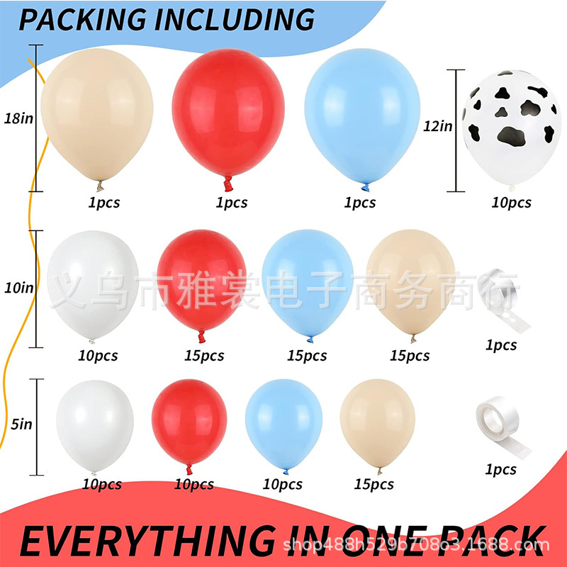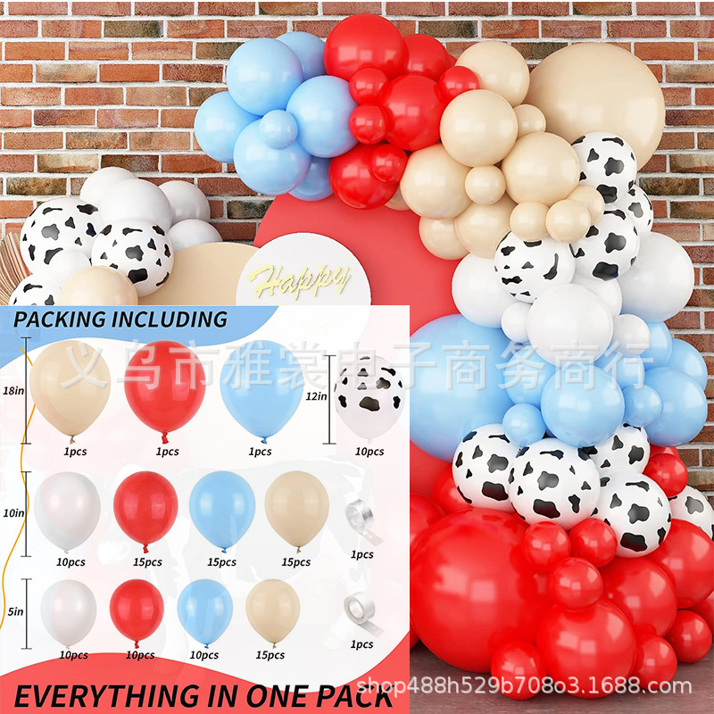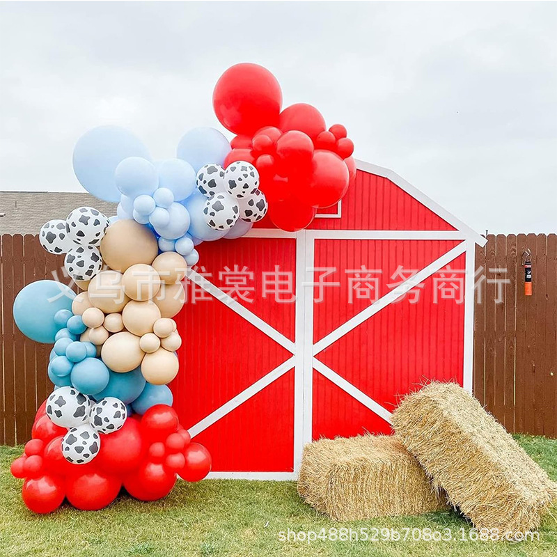 【品名】:跨境热卖 农场动物主题奶牛印花红蓝白乳胶气球 西部牛仔生日派对