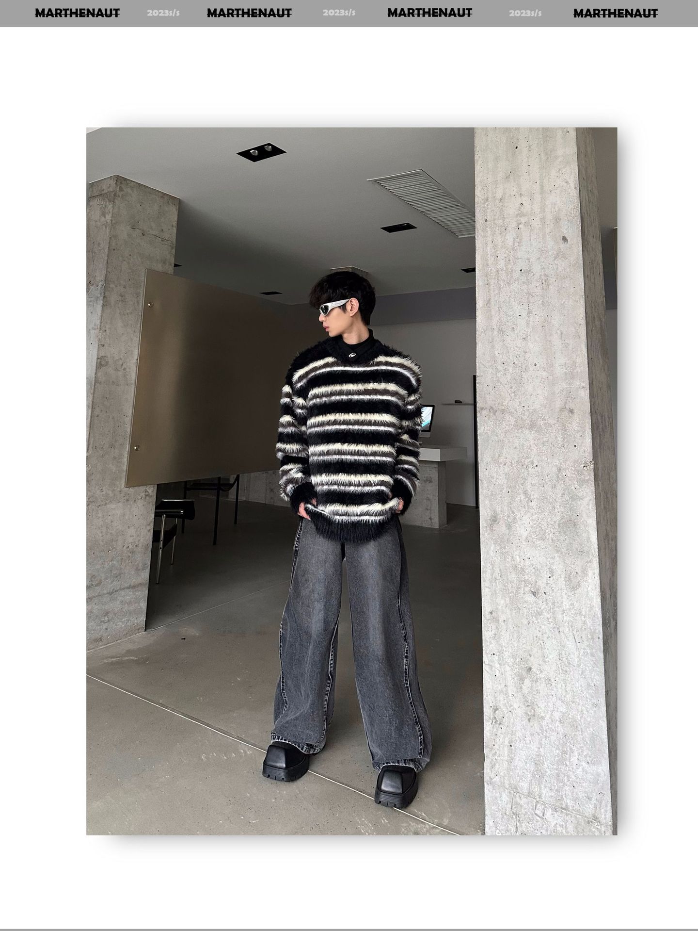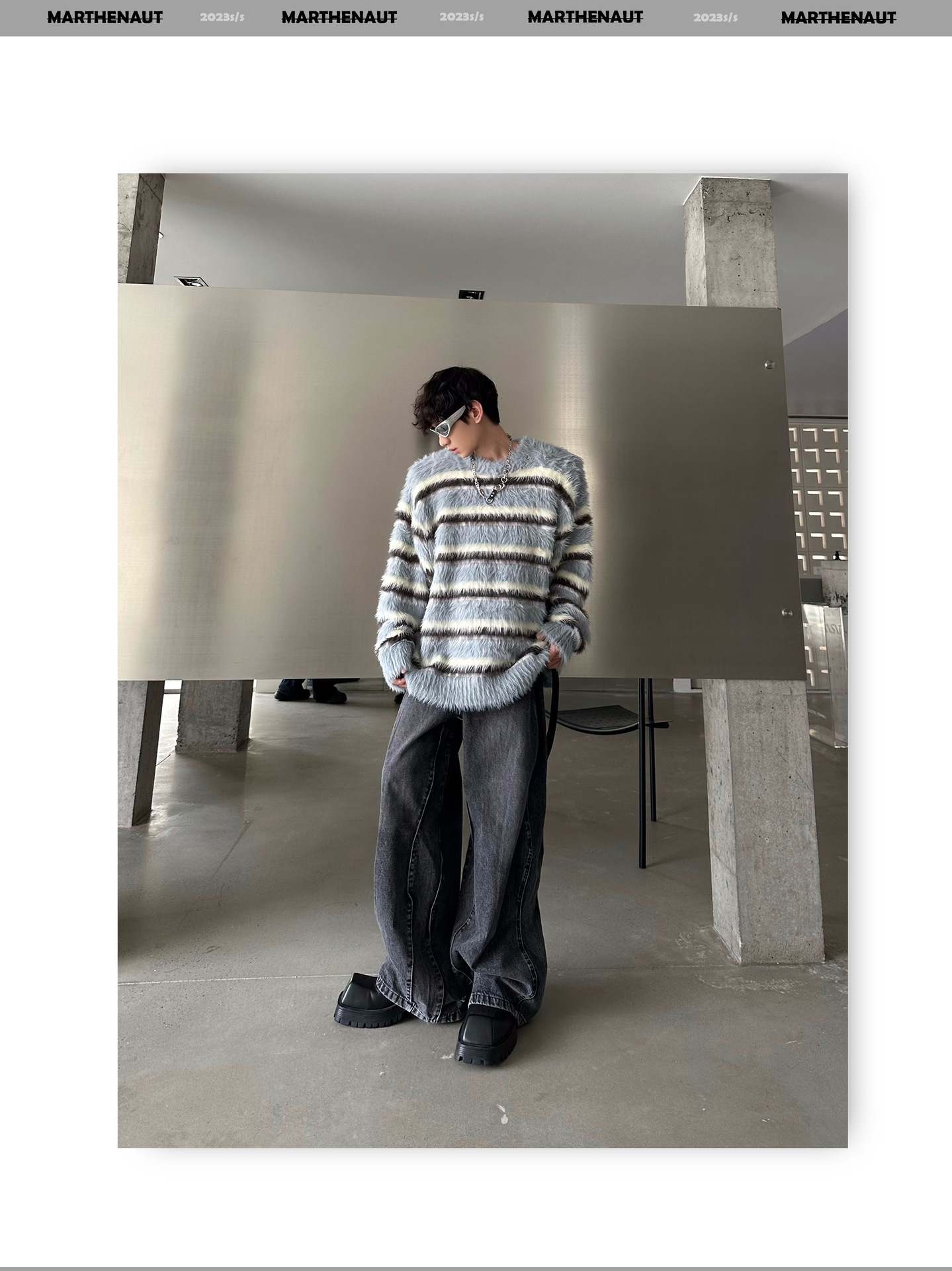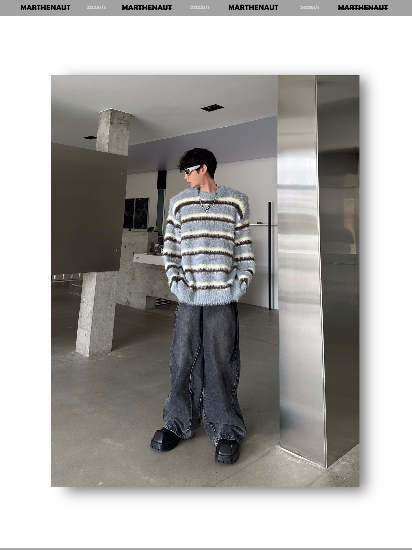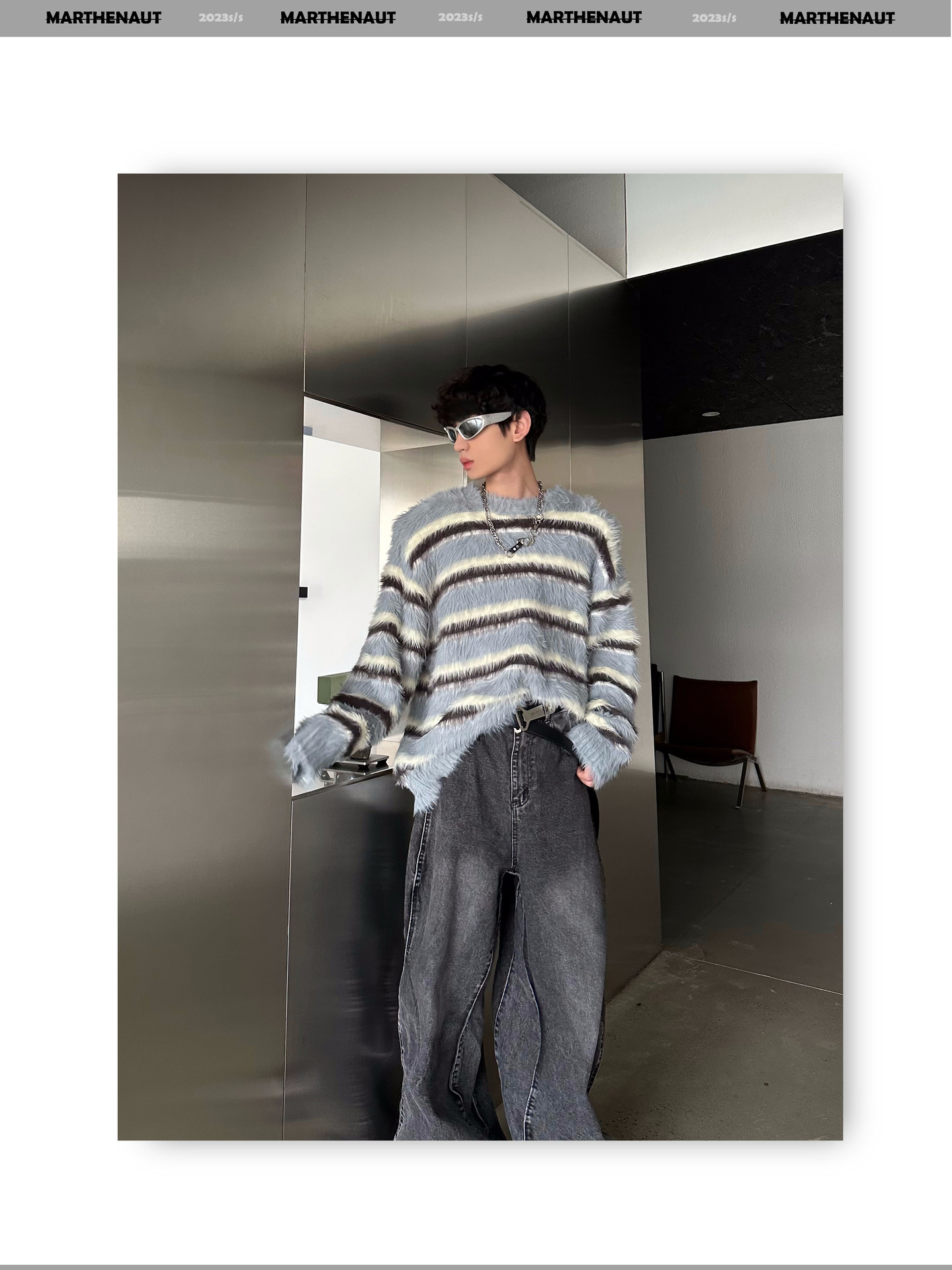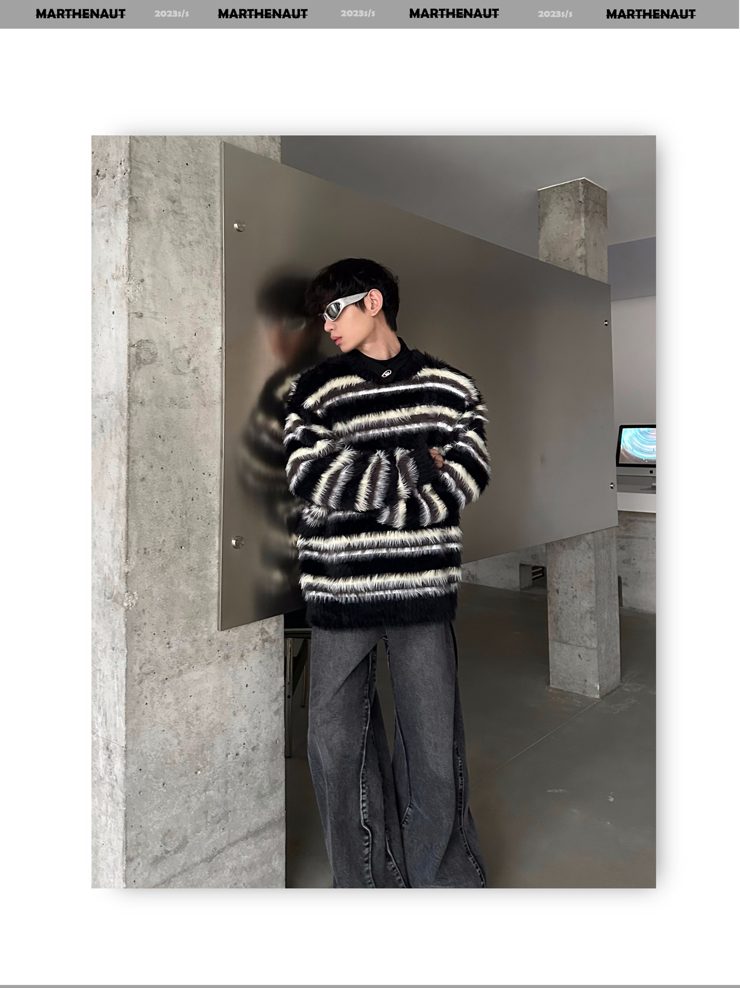 공장 직접 공급 틈새 모헤어 블랙과 화이트 스트라이프 디자인 센스 플러시 스웨터 남성의 간단한 하이 엔드 센스 스웨터 트렌디스토어 가기
