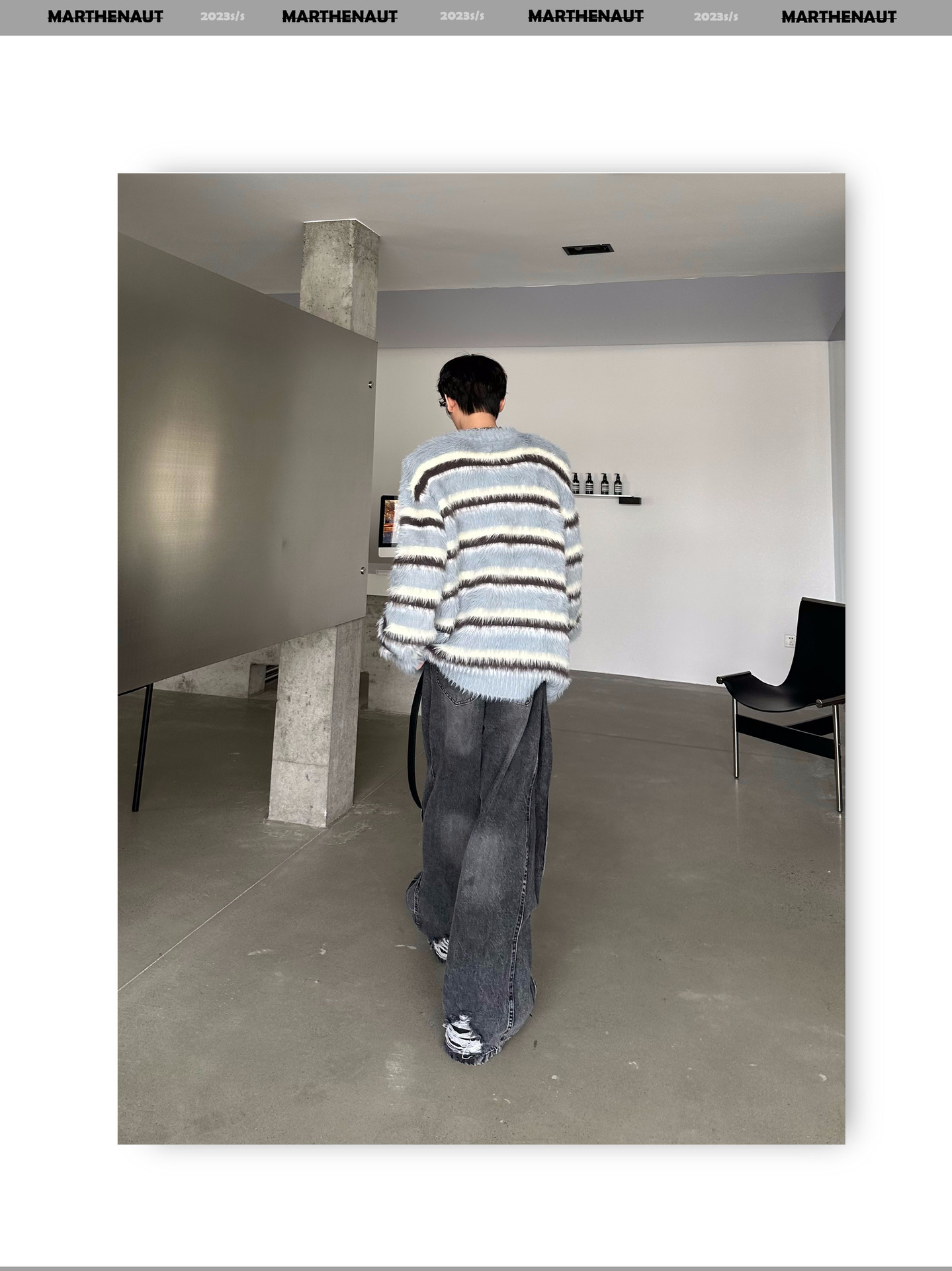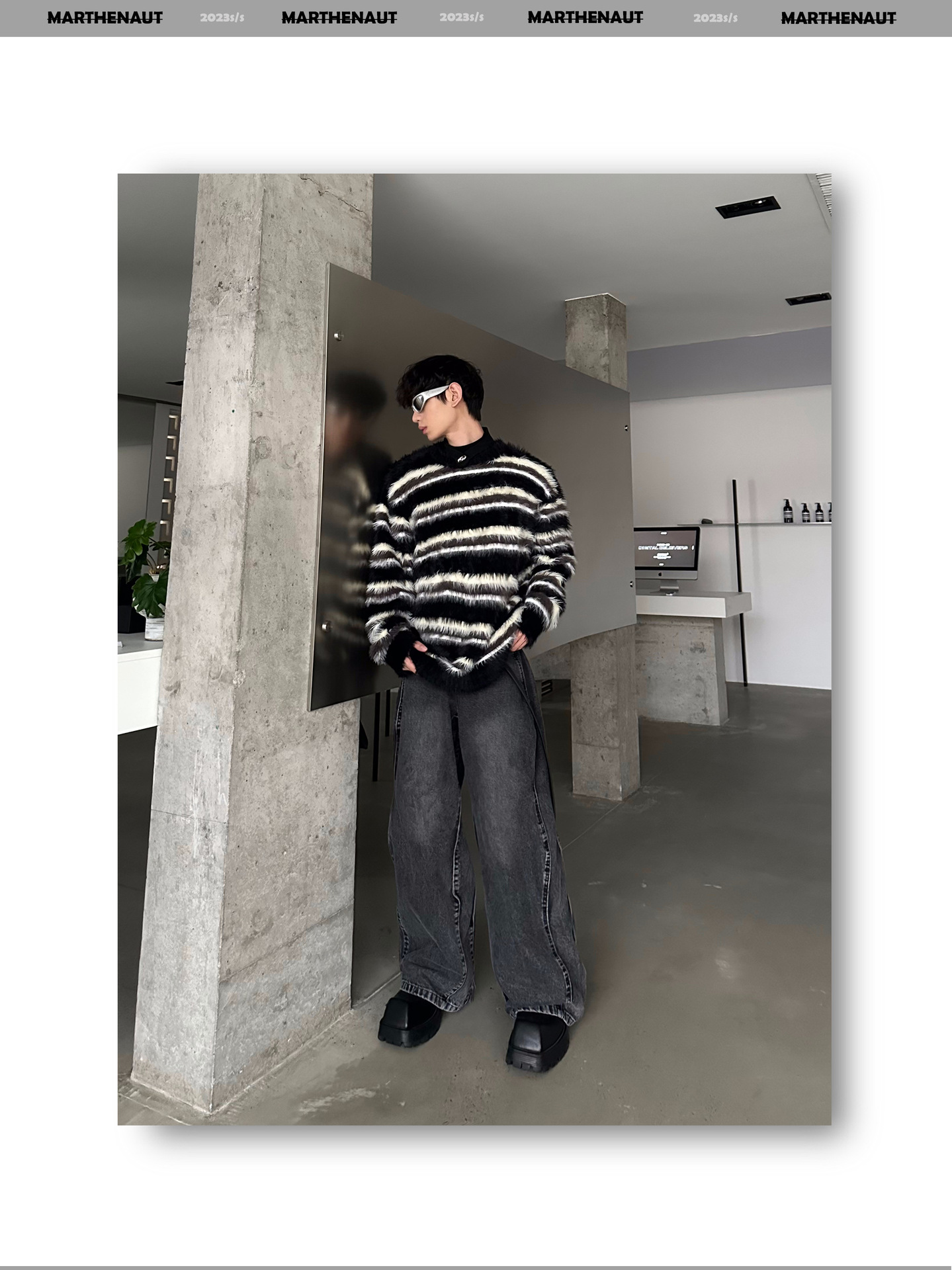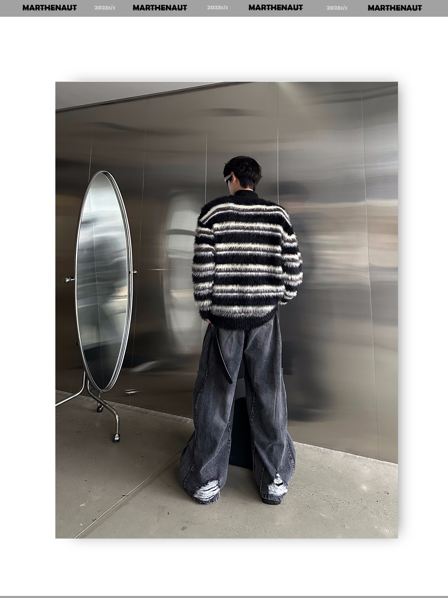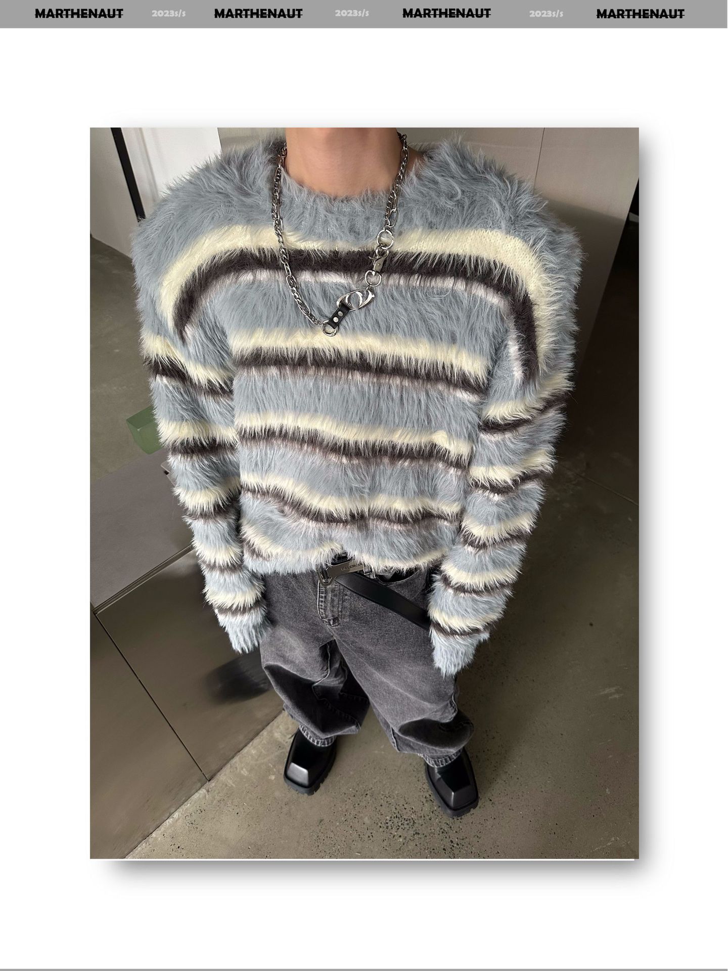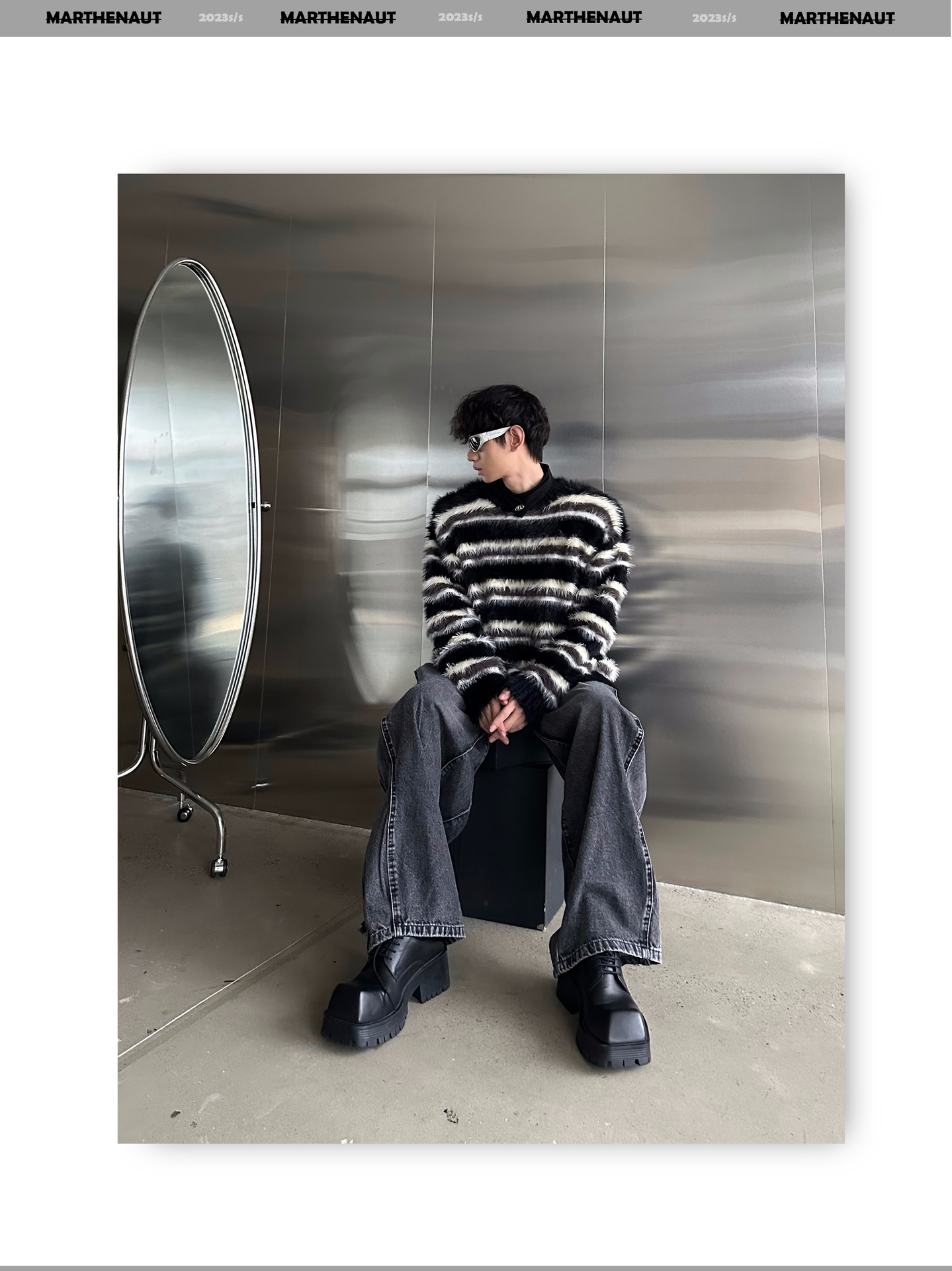 공장 직접 공급 틈새 모헤어 블랙과 화이트 스트라이프 디자인 센스 플러시 스웨터 남성의 간단한 하이 엔드 센스 스웨터 트렌디스토어 가기