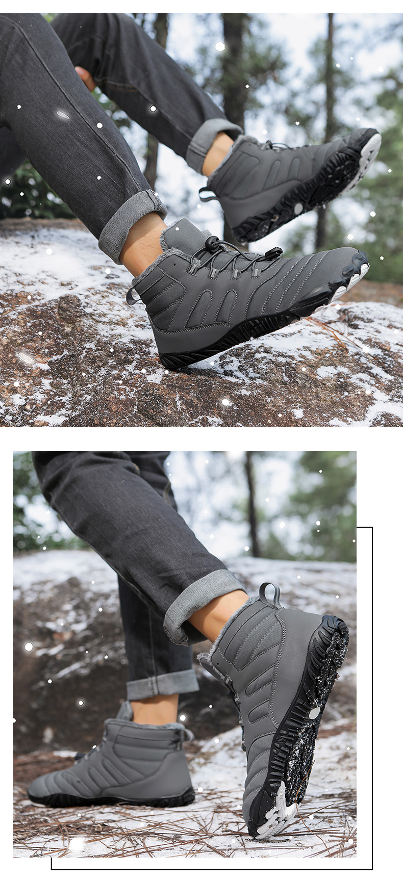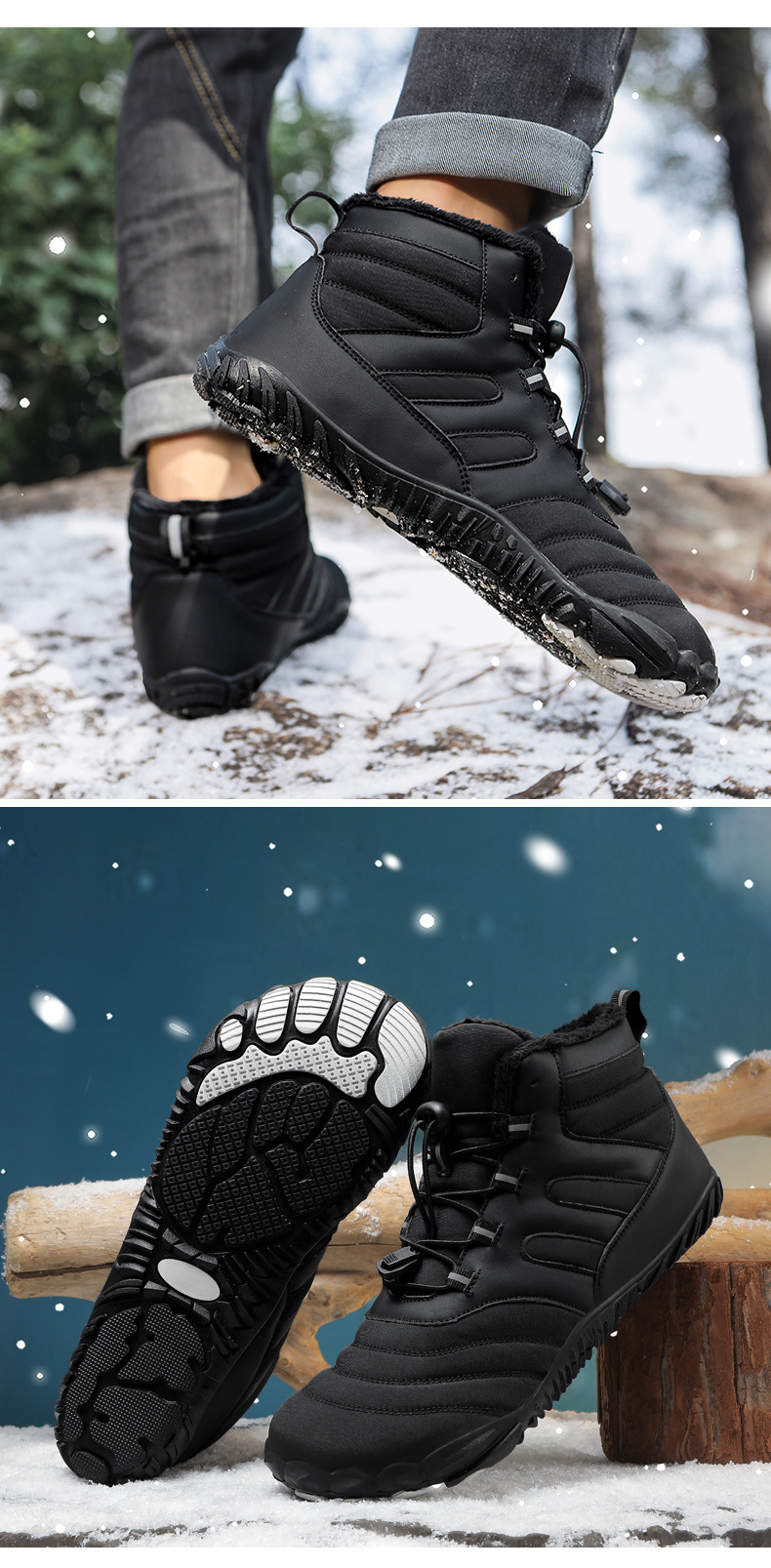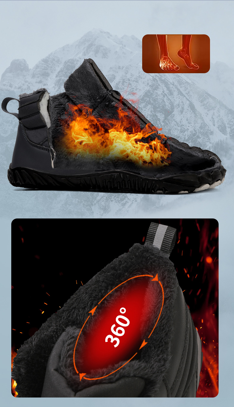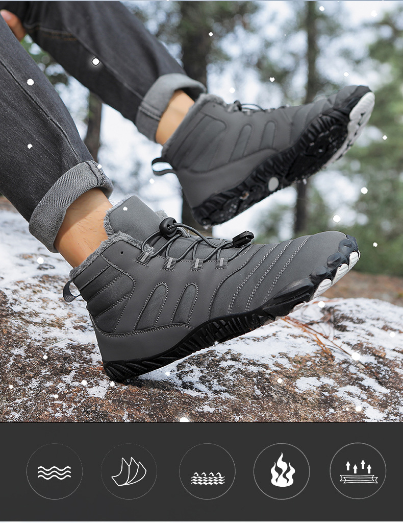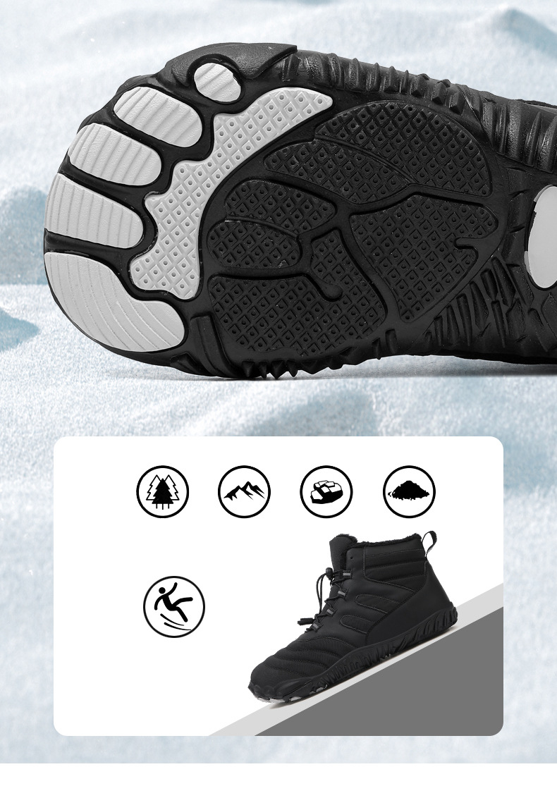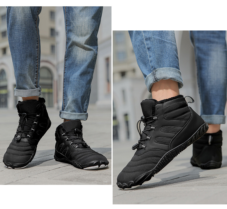 2024 국경 야외 새로운 가을 및 겨울 캐주얼 5 손가락 신발 남성 등산 맨발의 코튼 슈즈 두껍게 따뜻한 미끄럼 방지