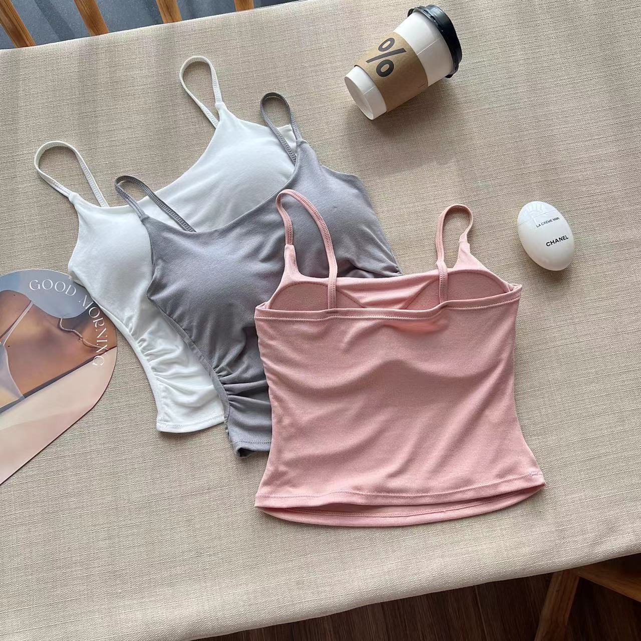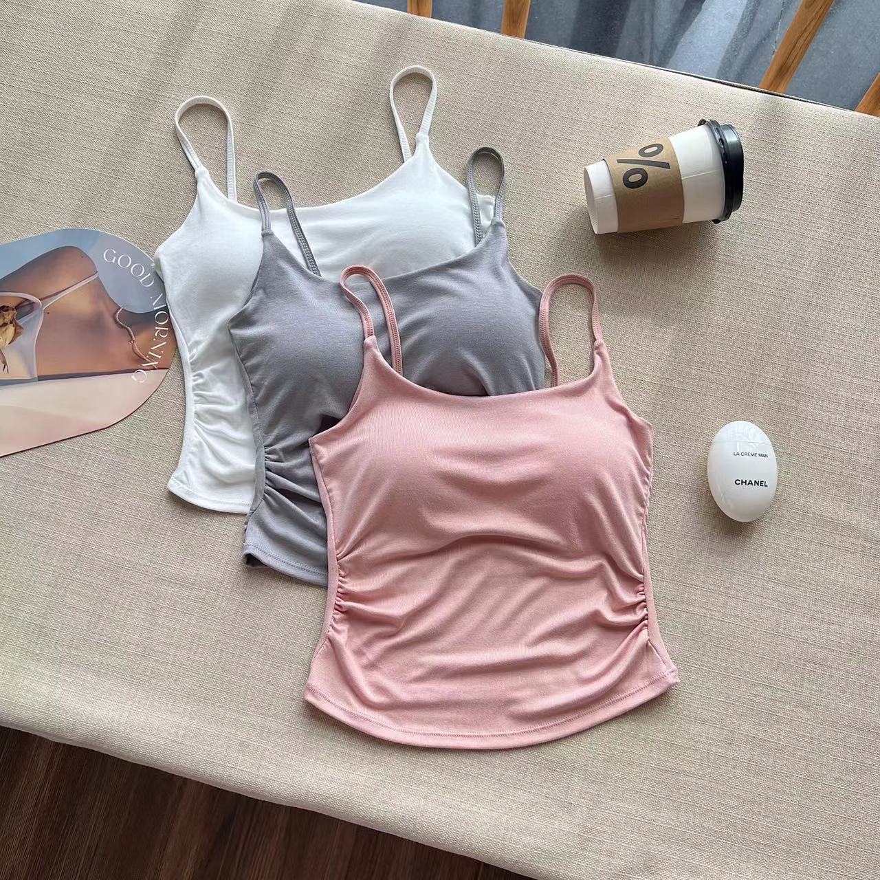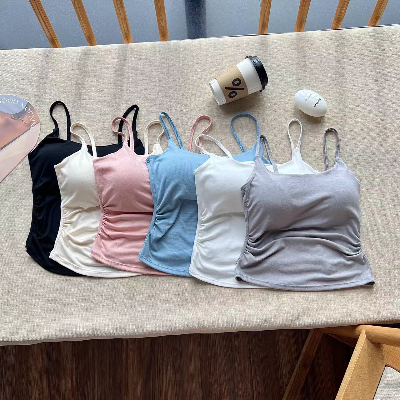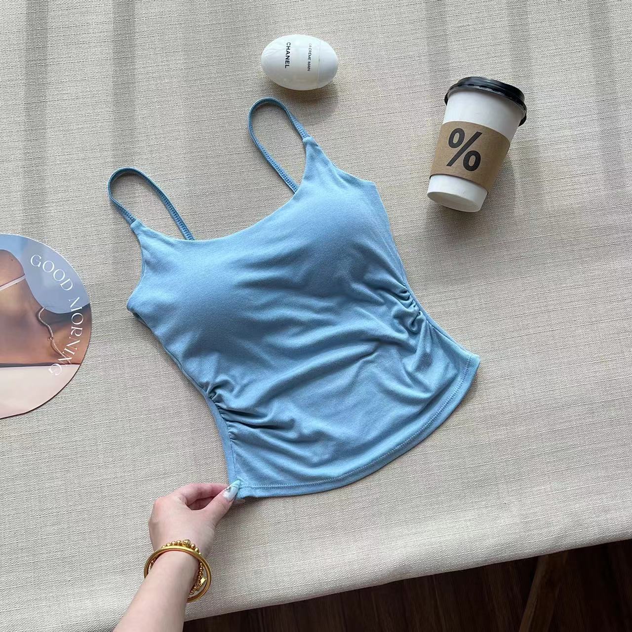 여름 소녀 캐미솔, 측면 주름, 와이어 프리 고정 컵, 편안하고 통기성이 뛰어난 핫 소녀의 다용도 아우터 튜브 탑